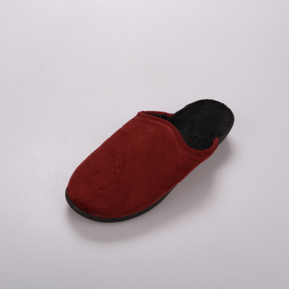 Домашние тапочки без задника, мягкие и удобные для дома. Верх из бордового текстиля со стёжкой, внутри чёрная мягкая стелька. Подойдут для повседневной носки, а подошва с рельефом помогает меньше скользить.