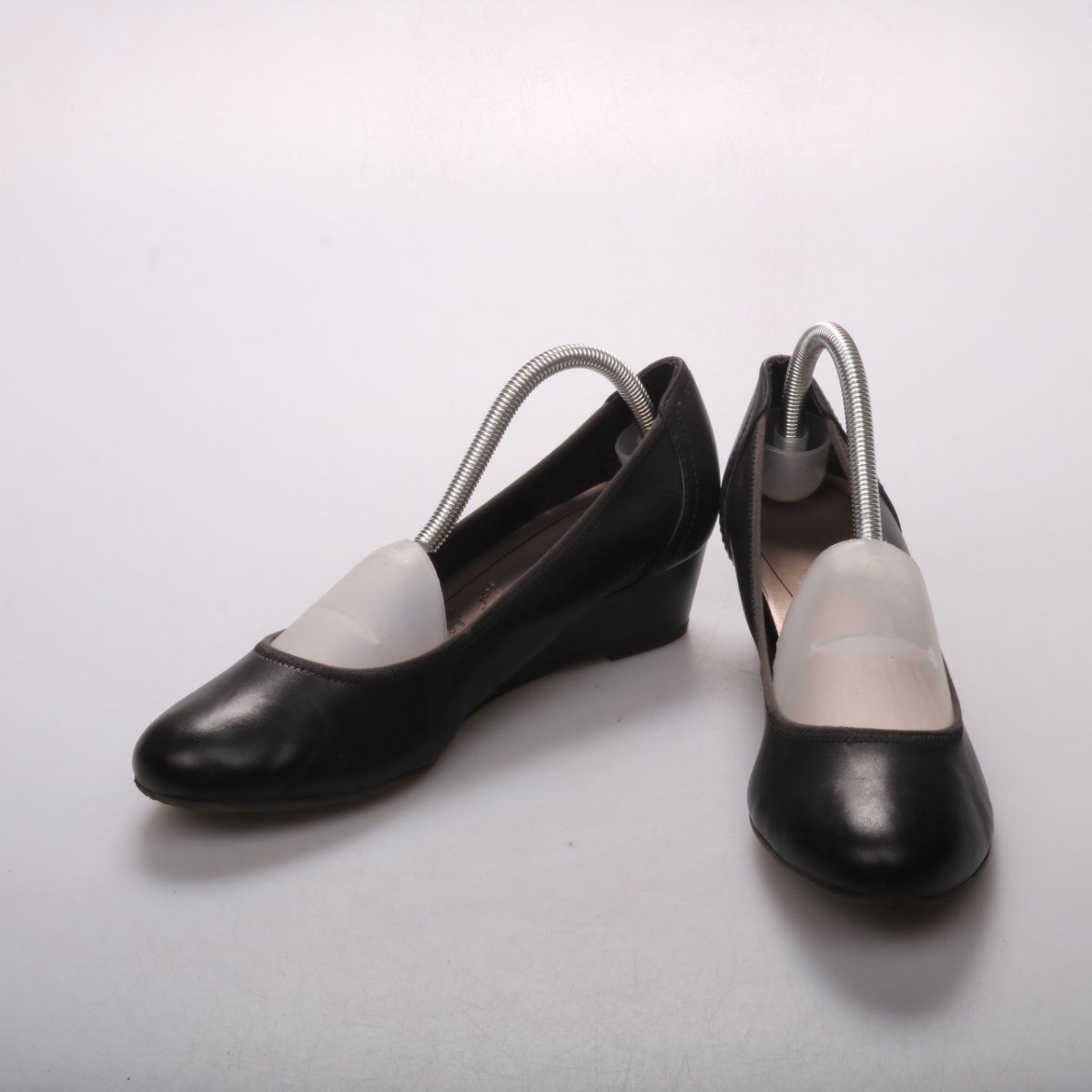 Женские туфли Tamaris на устойчивой танкетке, закрытый округлый носок, цвет чёрный. Подойдут для офиса и повседневной носки в межсезонье и круглый год. Танкетка даёт удобный подъём и более устойчивую посадку по сравнению с тонким каблуком.
