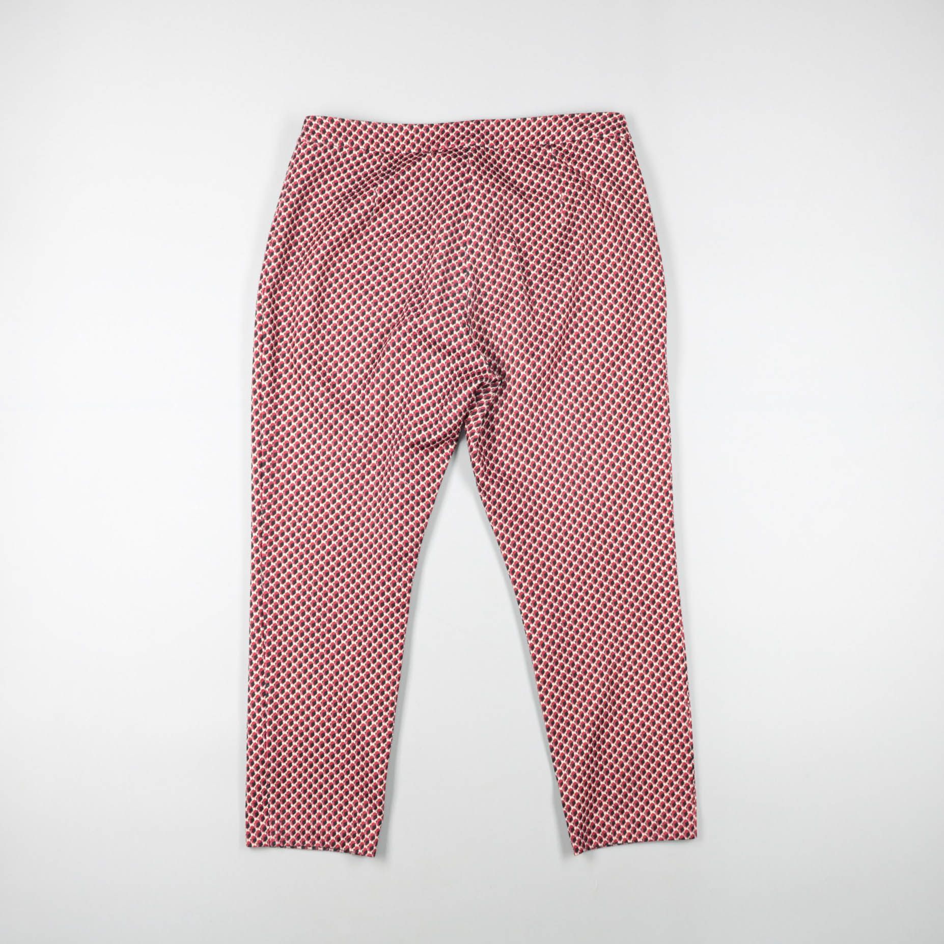 Женские зауженные брюки с мелким геометрическим принтом в красно-бело-чёрной гамме. Подойдут для повседневных образов и офиса с простыми однотонными топами и рубашками. Лёгкая ткань и укороченная длина удобны в тёплую погоду и легко сочетаются с кедами...