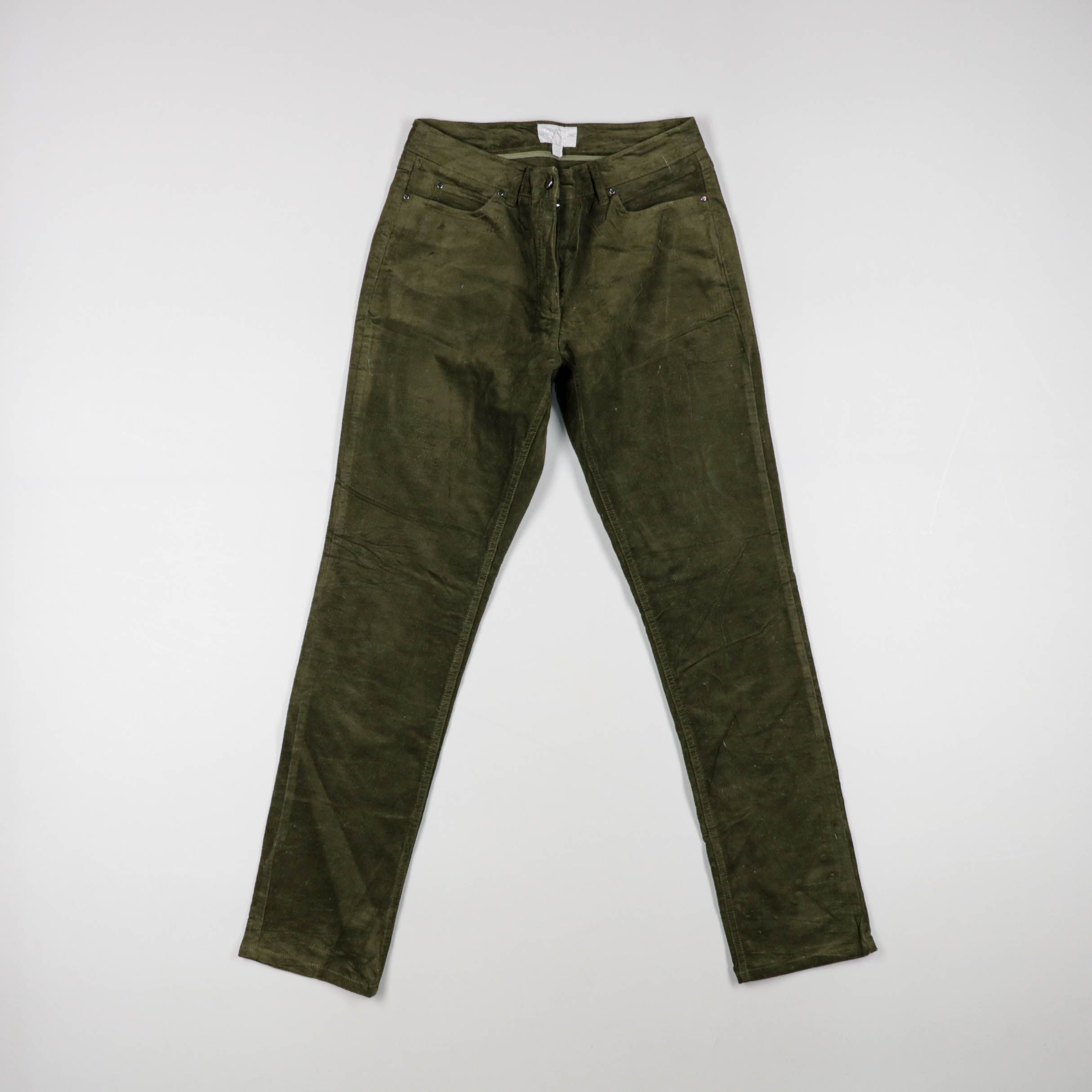 Брюки прямого кроя в тёмно-оливковом цвете, с классической посадкой и пятью карманами. Подойдут для повседневных образов в стиле casual и в качестве рабочей пары на каждый день. Плотная ткань практична в носке и хорошо держит форму.