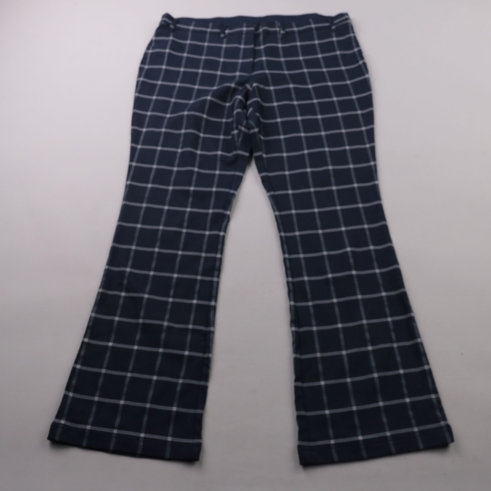 Брюки BPC (bonprix collection) тёмно-синего цвета в клетку, прямого кроя. Подойдут для офиса и повседневных образов в демисезон. Ткань с эластаном слегка тянется и комфортно садится по фигуре.