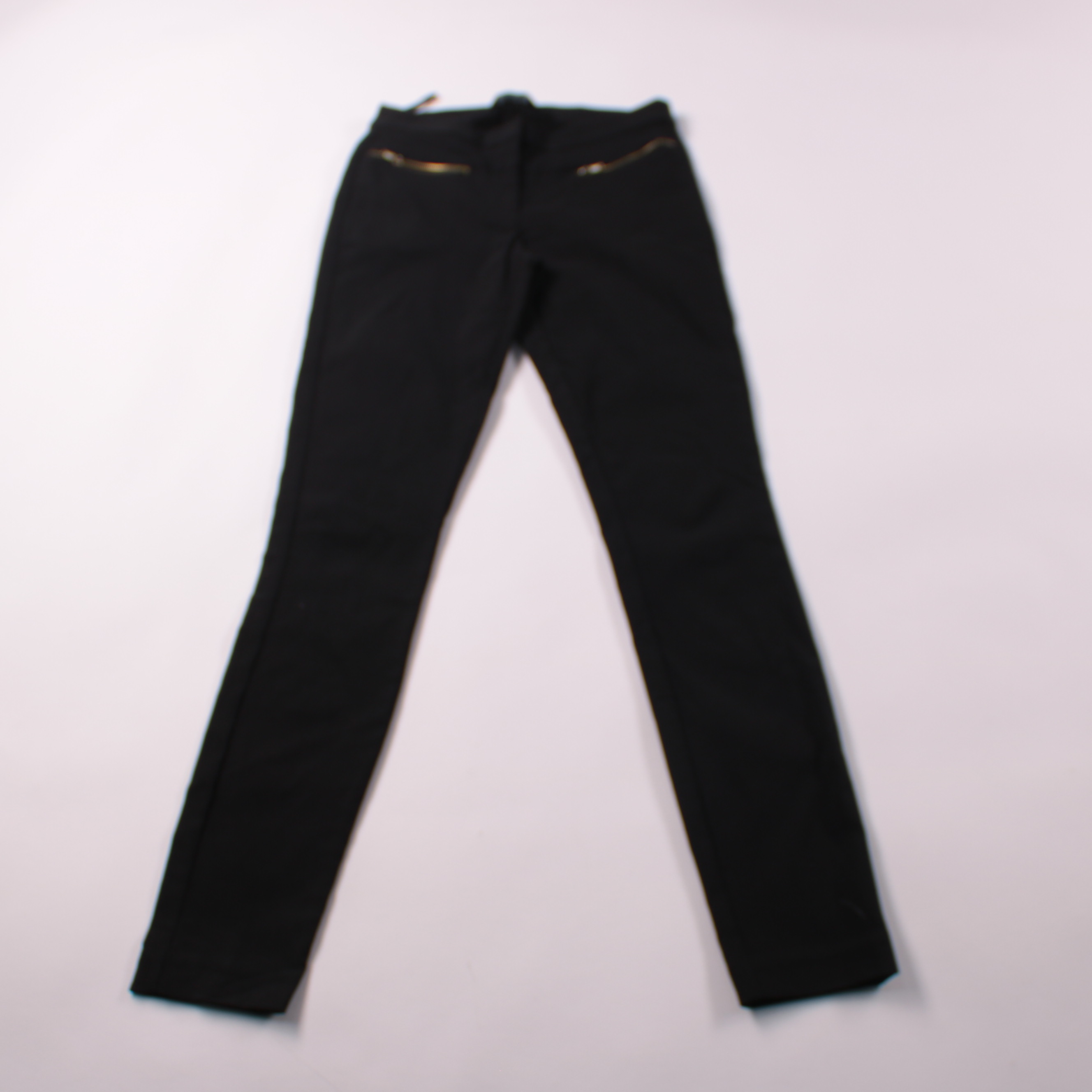 Чёрные женские брюки New Look с аккуратной посадкой и декоративными молниями на карманах. Подойдут для офиса и повседневных образов с рубашкой или свитером. Ткань с эластаном слегка тянется и комфортно сидит по фигуре.