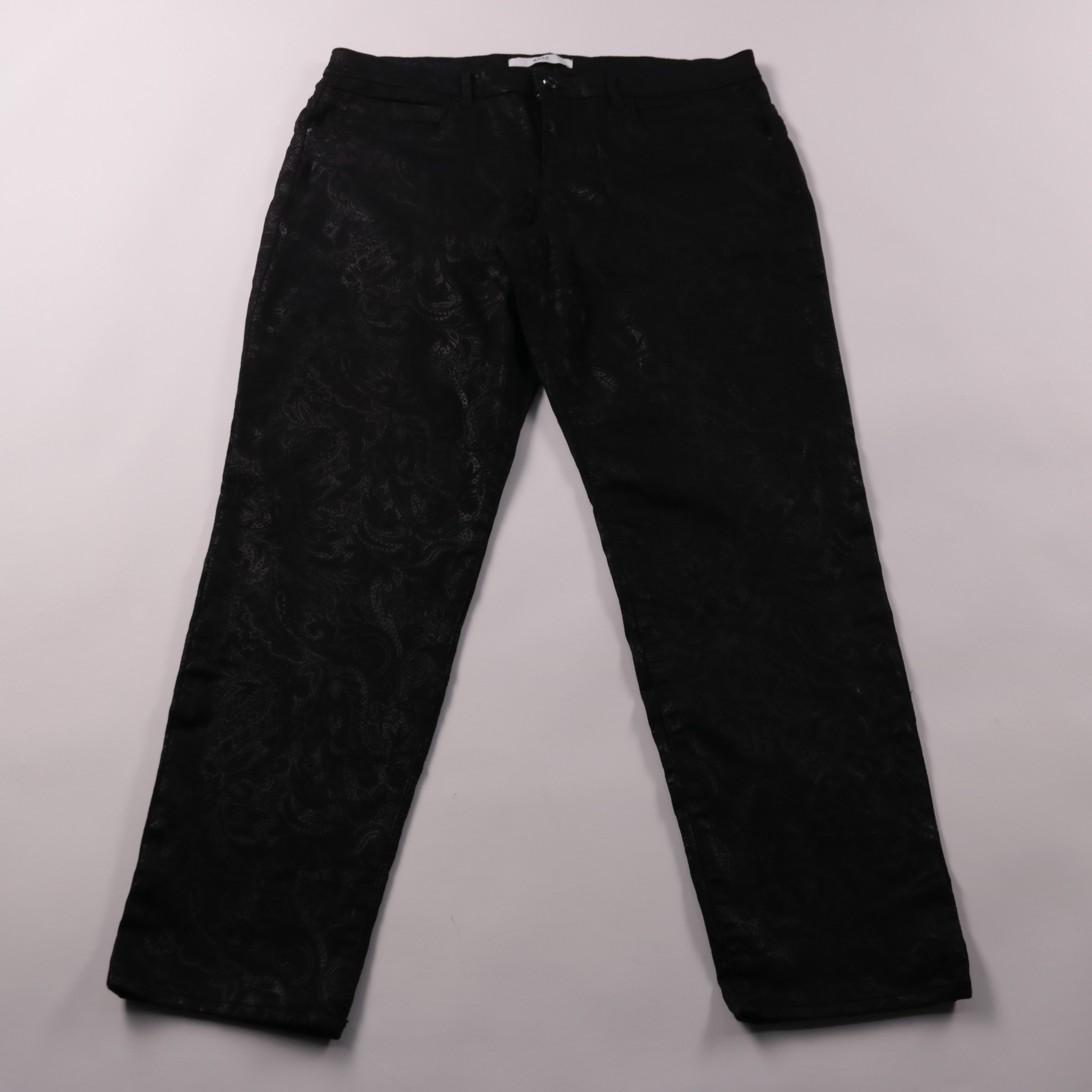 Женские брюки Brax с едва заметным жаккардовым узором в чёрном цвете. Подойдут для офиса и на каждый день, легко сочетаются с рубашкой или джемпером. Плотная ткань со стрейчем комфортно садится по фигуре и не сковывает движения.