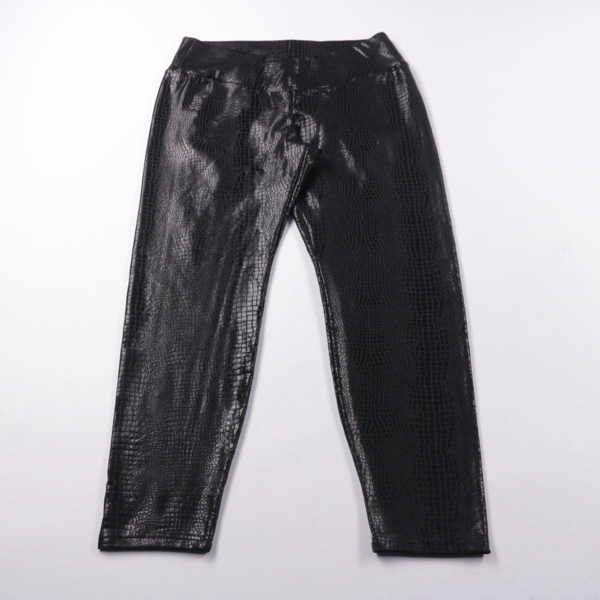 Женские брюки Shein из эластичного материала с глянцевой фактурой под кожу рептилии. Подойдут для вечерних образов и повседневных выходов с базовым верхом. Материал тянется и легко протирается влажной салфеткой.