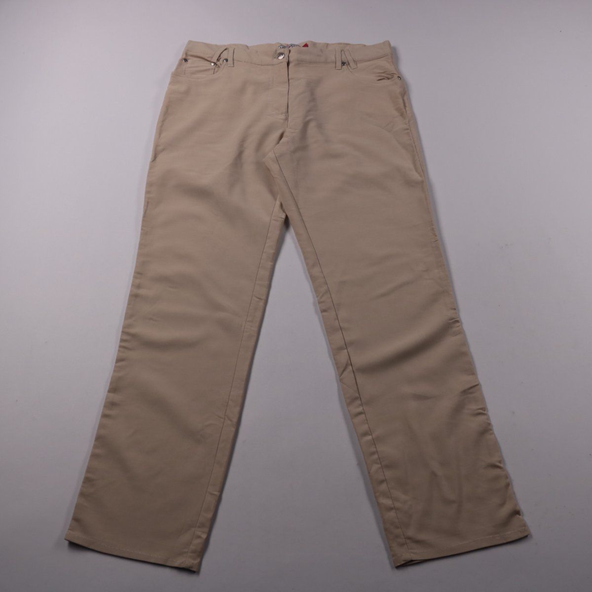 Женские брюки Just for you прямого кроя в бежевом цвете. Подойдут для повседневных образов и офиса в тёплое время или в помещении круглый год. Ткань со стрейчем, поэтому посадка комфортная и не сковывает движения.