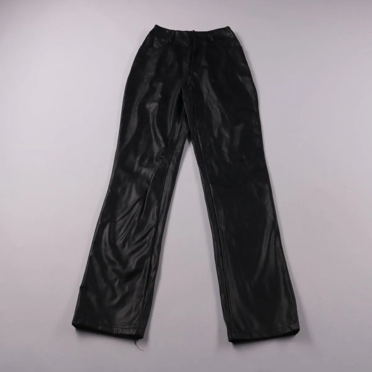 Брюки PrettyLittleThing из экокожи чёрного цвета, прямой крой и высокая посадка. Подойдут для повседневных образов и вечерних выходов с жакетом или объёмным свитером. Материал легко протирается и смотрится фактурно.