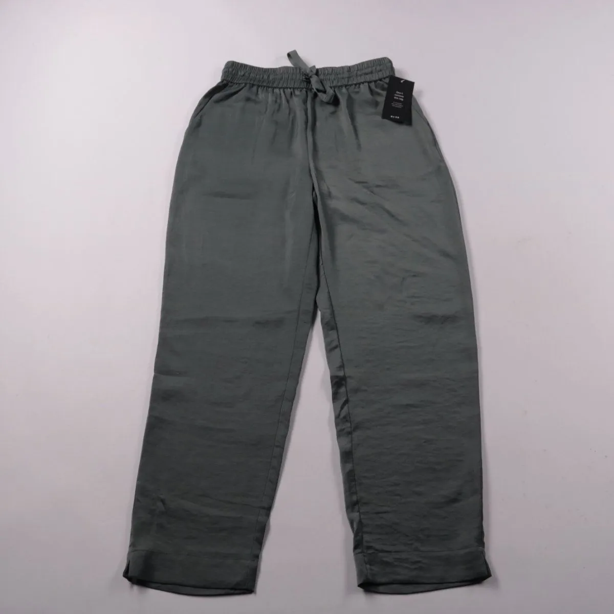 Брюки NA-KD Reborn в расслабленном прямом крое, цвет зелёный, пояс на резинке со шнурком. Подойдут для повседневных образов, поездок и дома, когда нужен комфорт без жёсткой посадки. Практичны в уходе: ткань из полиэстера быстро сохнет и меньше мнётся.