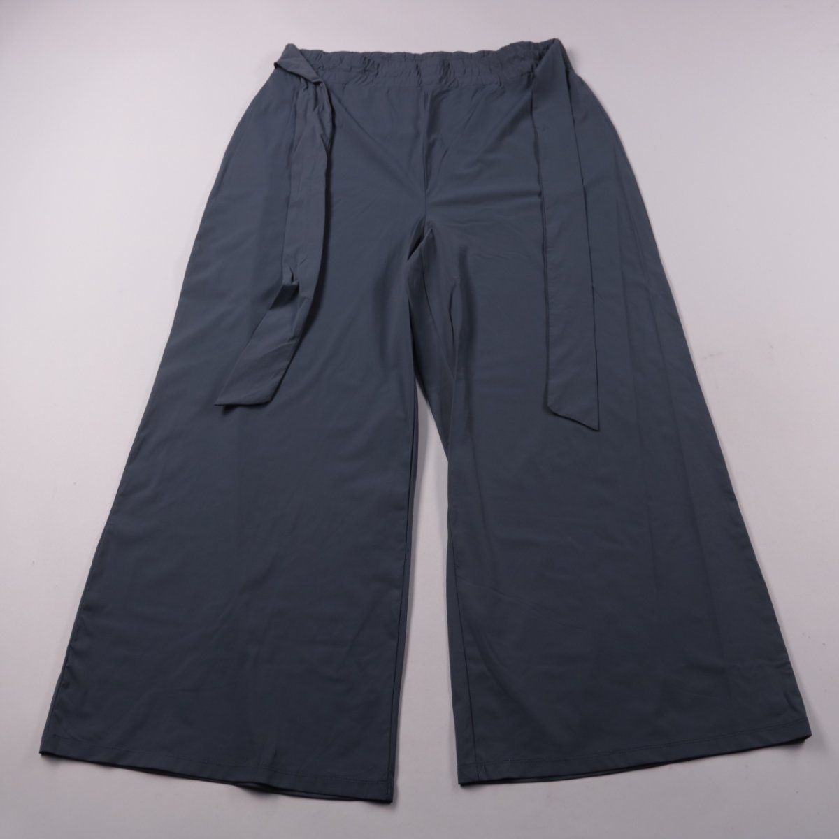 Женские брюки-палаццо из нейлона со спандексом, тёмно-синего цвета, с эластичным поясом и завязками. Подойдут для повседневной носки и поездок в тёплую погоду благодаря свободному крою. Ткань тянется и быстро сохнет.