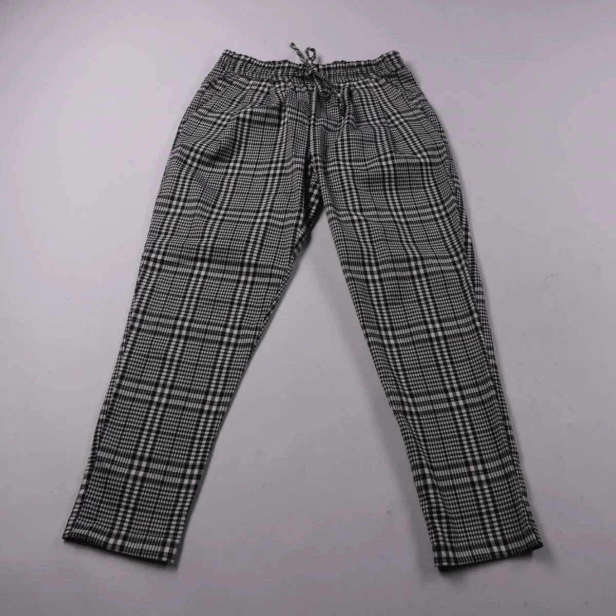 Женские брюки New Look в клетку, с эластичным поясом и шнурком для регулировки посадки. Подойдут для повседневных образов и офиса в прохладное время года. Практичный плюс — тянущаяся ткань и удобная посадка на резинке.