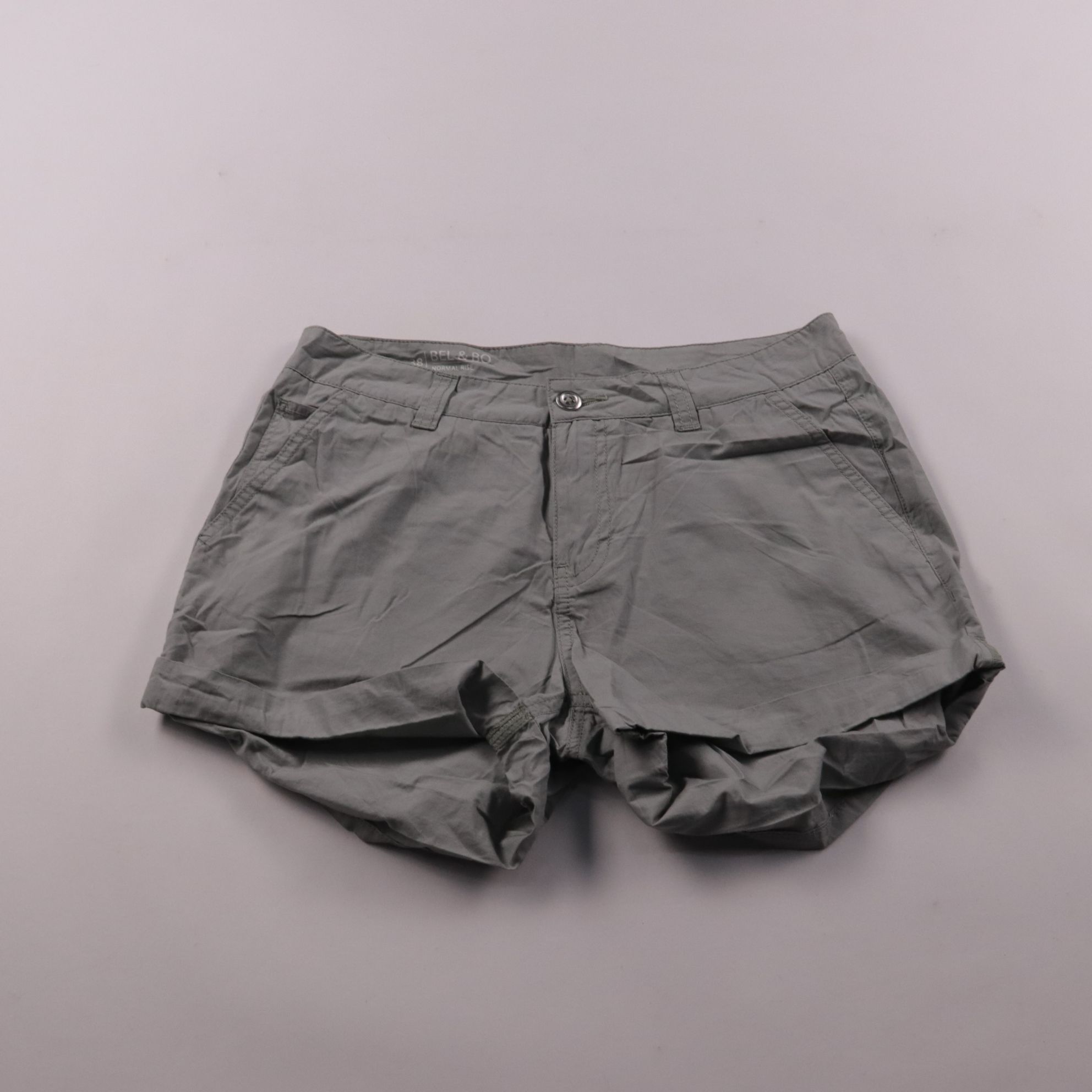 Женские хлопковые шорты Bel & Bo серого цвета с обычной посадкой (Normal Rise) и карманами. Подойдут для прогулок и повседневных летних образов, легко сочетаются с футболками и рубашками. Практичный плюс — дышащий 100% хлопок и удобная посадка на кажды...