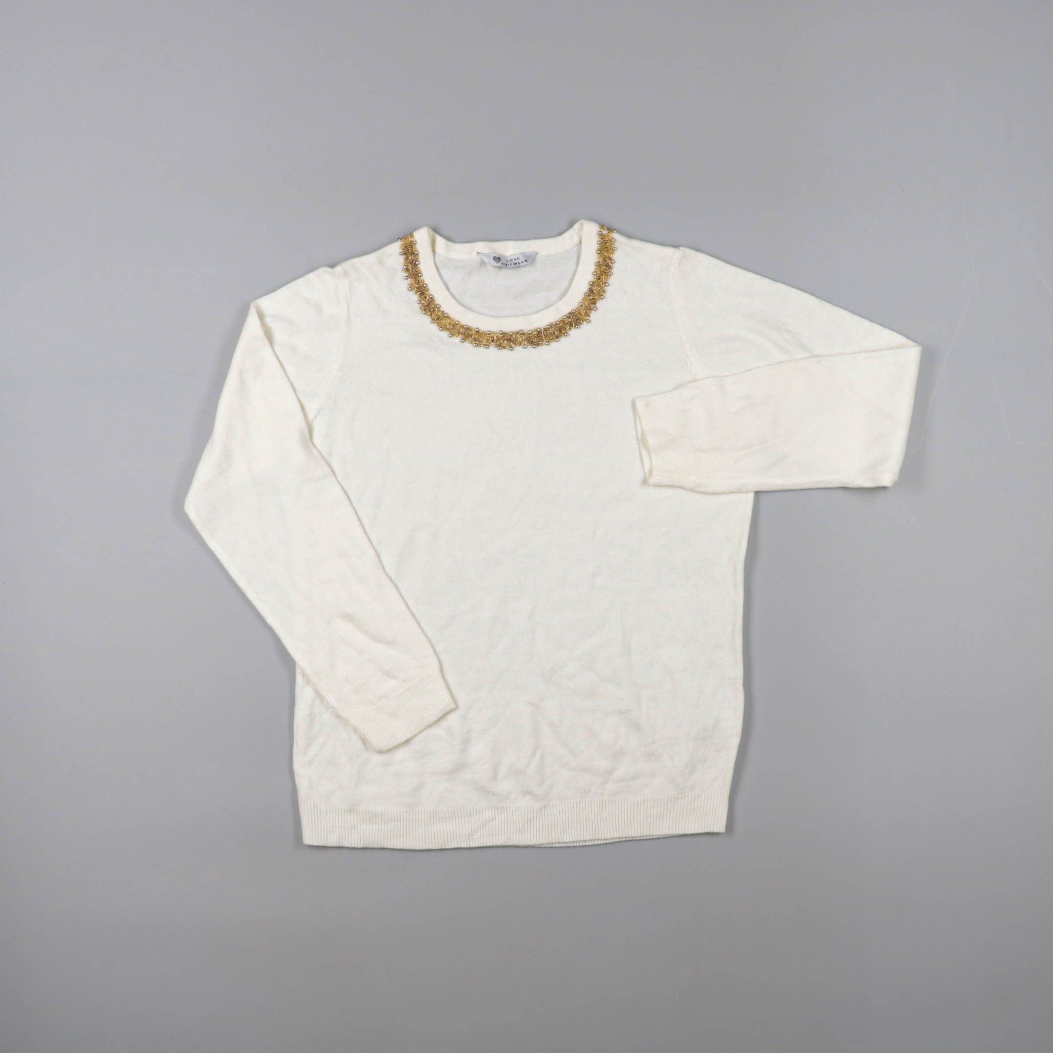 Женский джемпер Love Republic молочного цвета с декоративной отделкой по горловине. Подойдёт для офиса и повседневных образов, легко сочетается с юбками и брюками. Практичный вариант: аккуратный круглый вырез и мягкий трикотаж комфортны в носке.