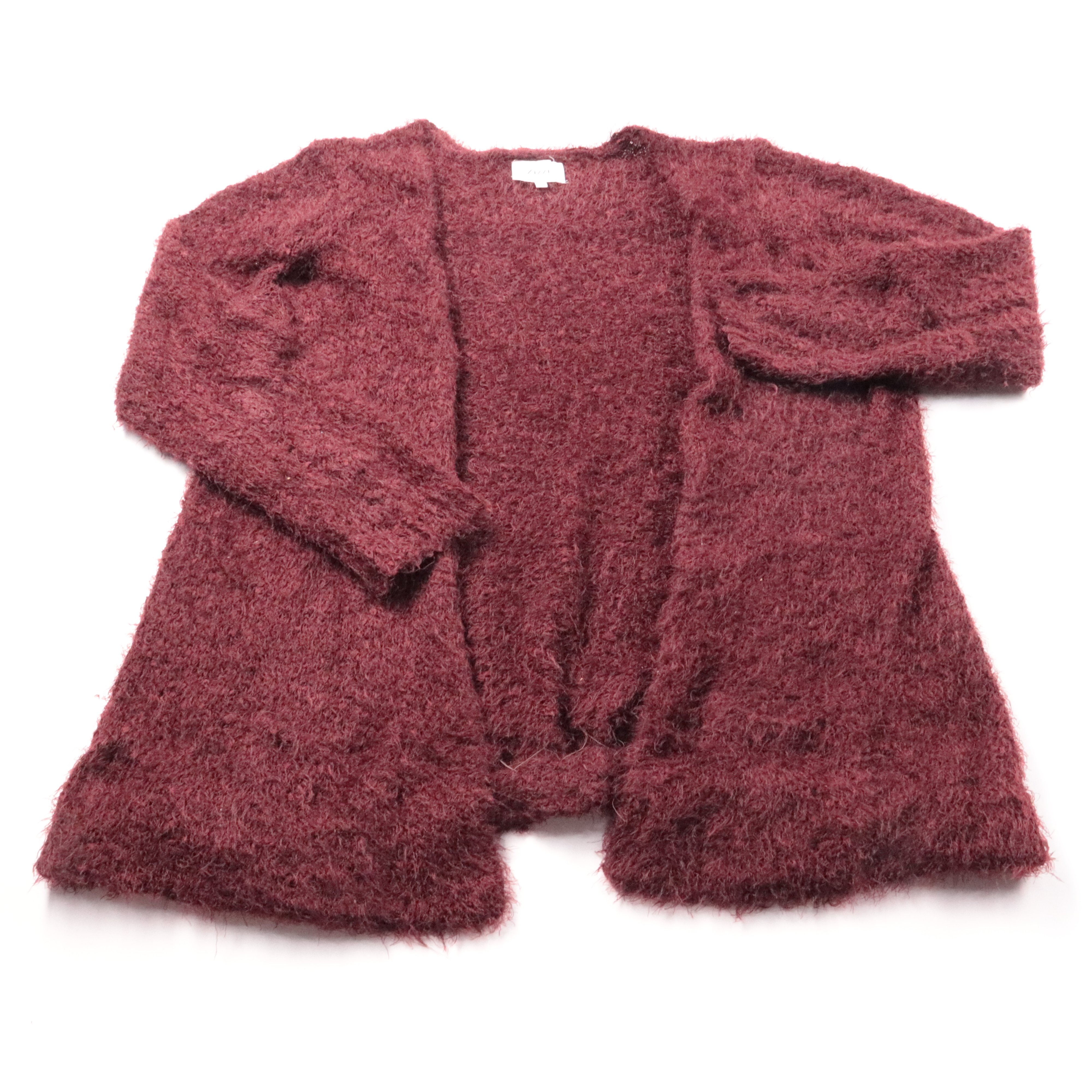 Женский кардиган Zizzi из мягкого пушистого трикотажа бордового цвета, без застёжки и с длинным рукавом. Подойдёт для прохладной погоды и многослойных образов на каждый день. Удобно быстро накинуть поверх футболки или блузы — не сковывает движения.