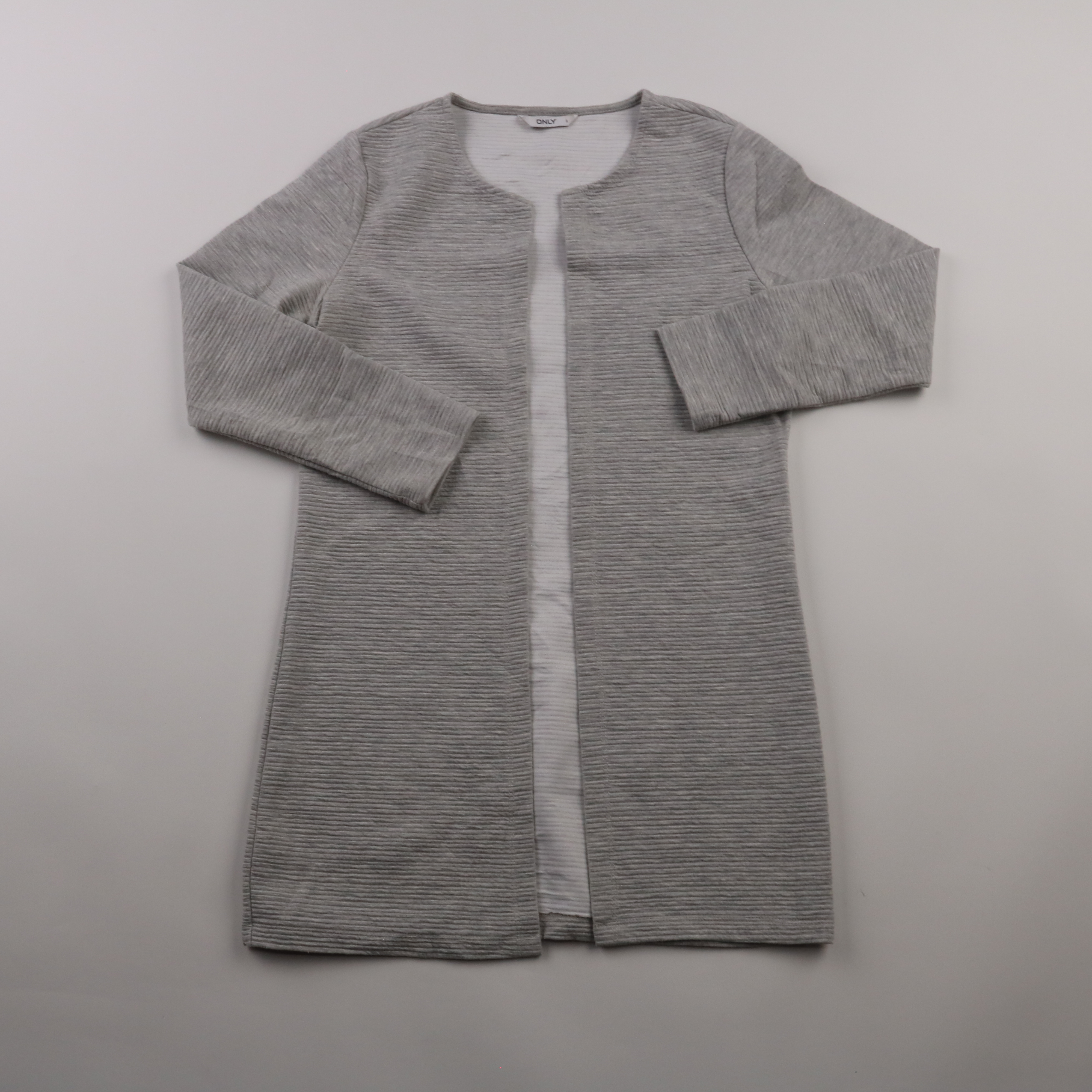 Кардиган Only серого цвета с фактурной вязкой и открытым передом. Подойдёт для офиса и повседневных образов, удобно накидывать поверх топа или блузки в прохладную погоду. Материал мягкий и не стесняет движений.