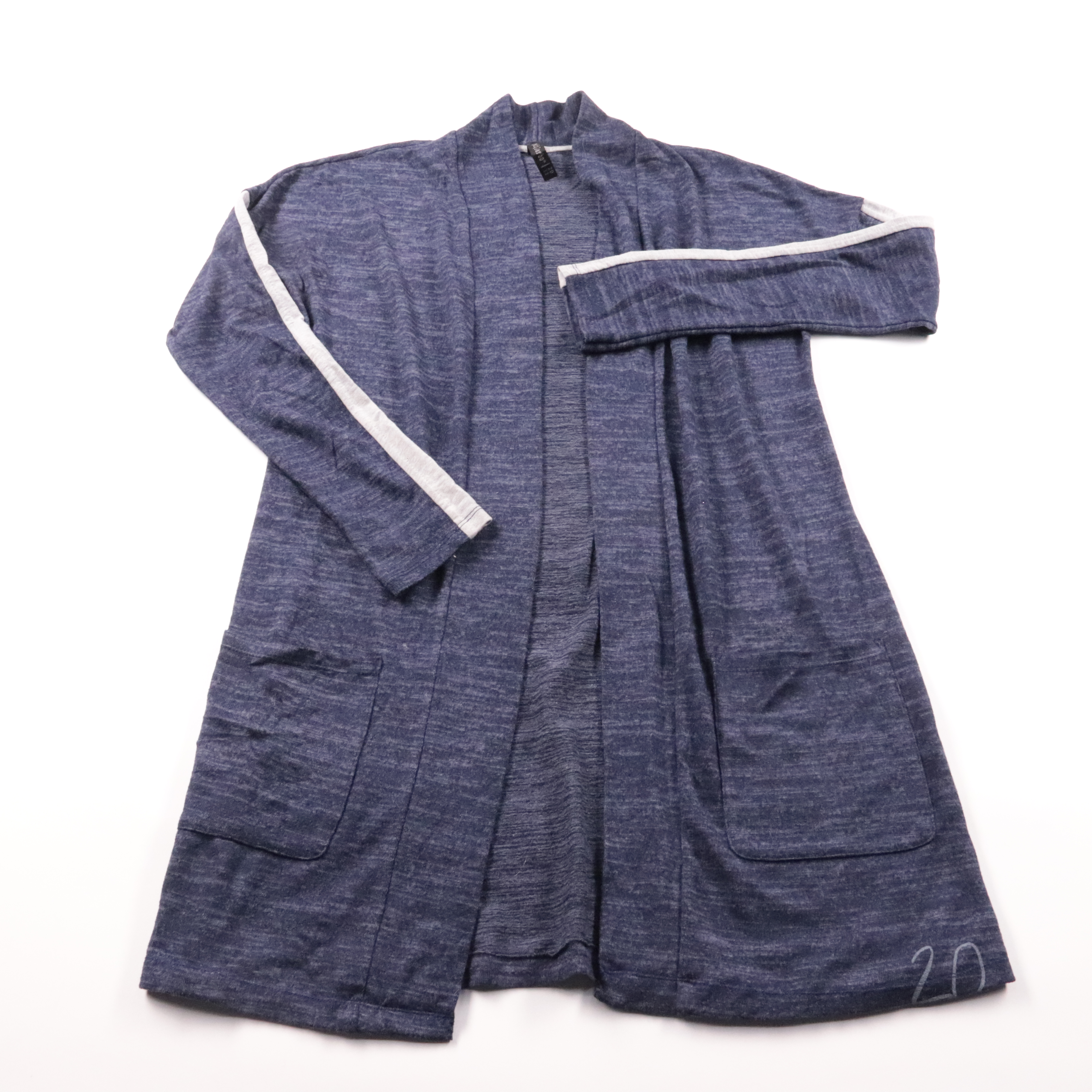 Удлинённый кардиган Stradivarius синего меланжевого цвета с белыми лампасами на рукавах и накладными карманами. Подойдёт для прохладной погоды и многослойных повседневных образов с джинсами или платьем. Мягкий трикотаж удобно носить как лёгкую накидку ...
