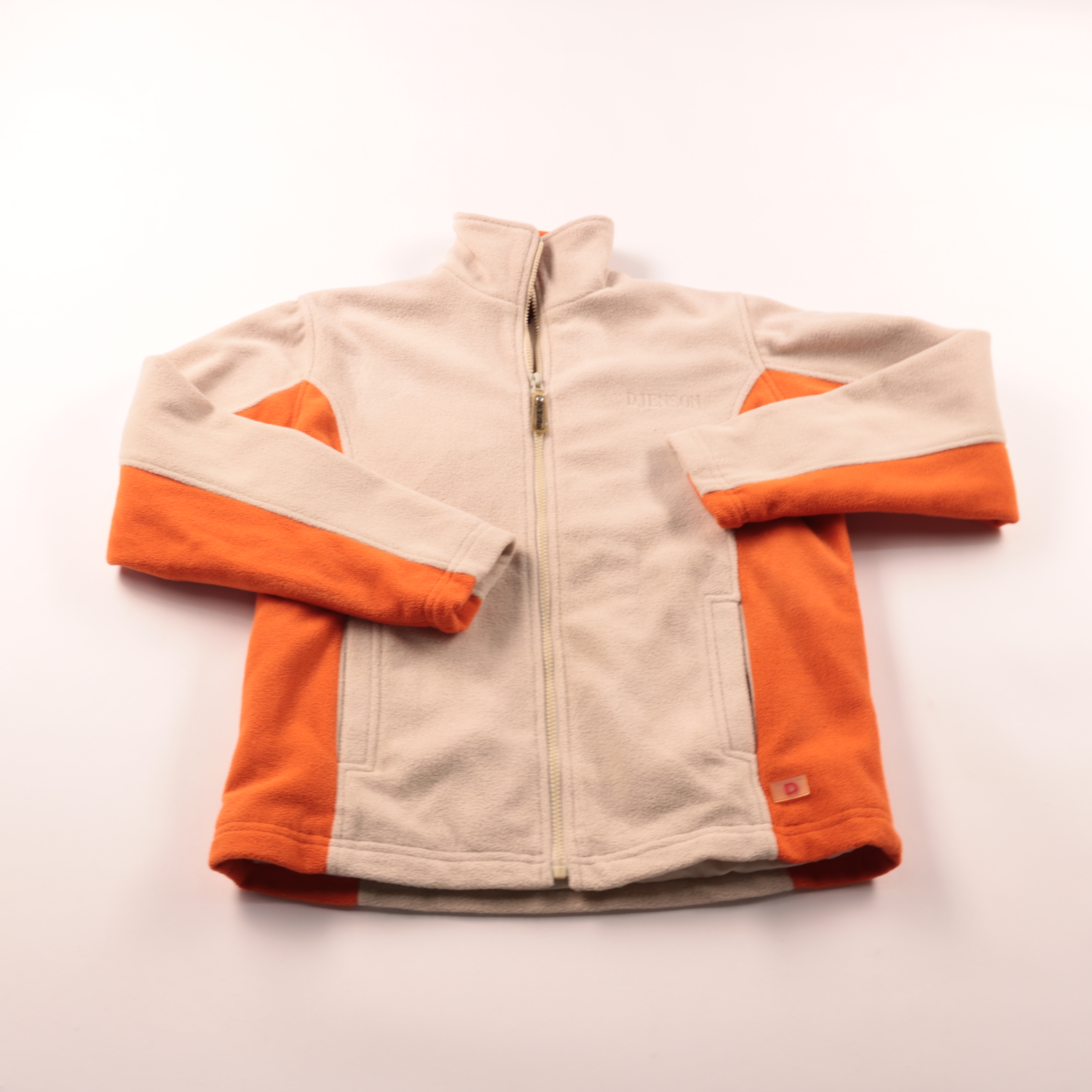 Флисовая кофта Djinn на молнии с воротником-стойкой и контрастными оранжевыми вставками. Подойдёт для прогулок, поездок и активного отдыха в прохладную погоду, удобно носить как второй слой. Мягкий флис быстро сохнет и прост в уходе.