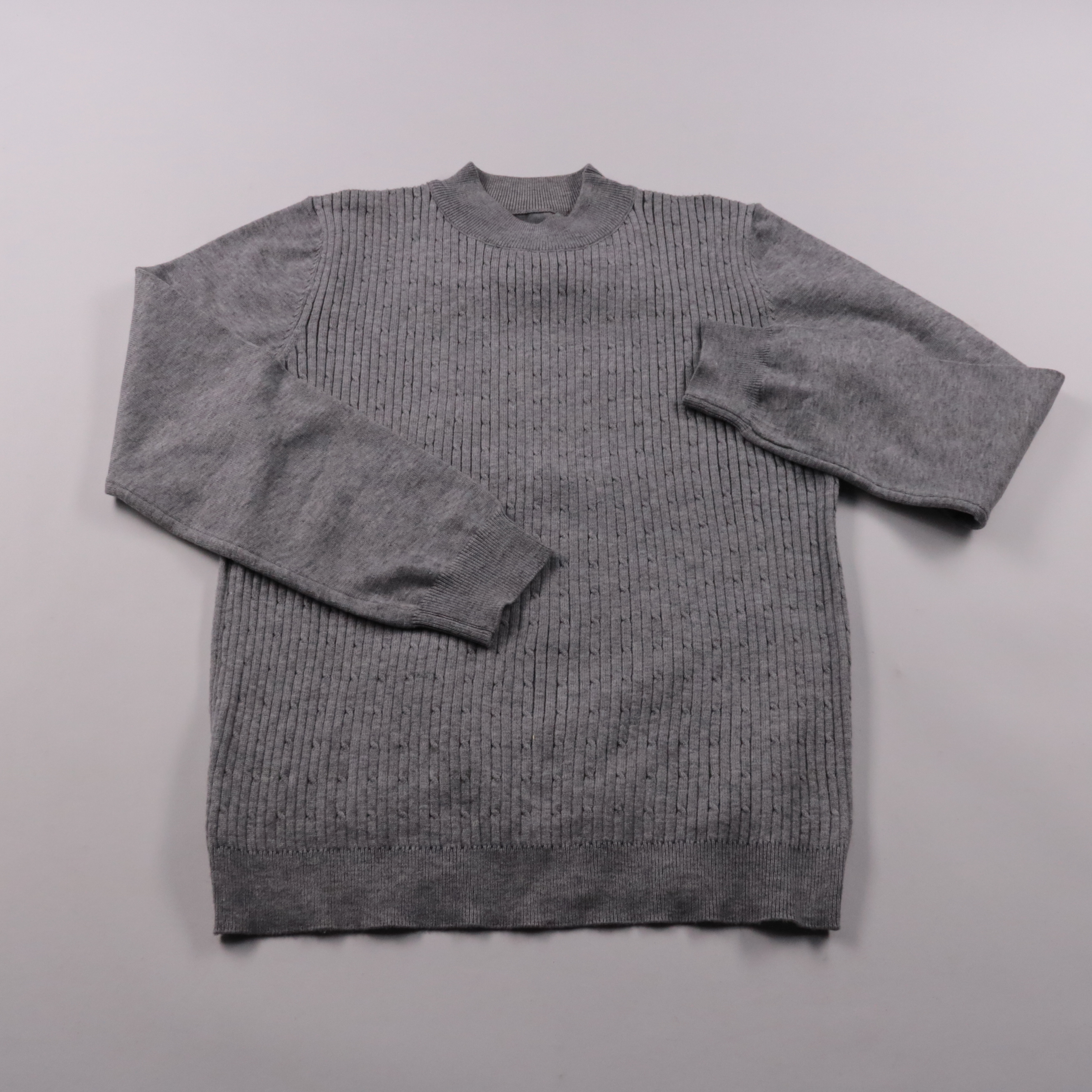 Серый вязаный свитер Shein с фактурной вязкой и круглым вырезом. Подойдёт для повседневных образов в прохладную погоду — с джинсами или юбкой. Мягкий трикотаж комфортно носится и легко сочетается с базовым гардеробом.