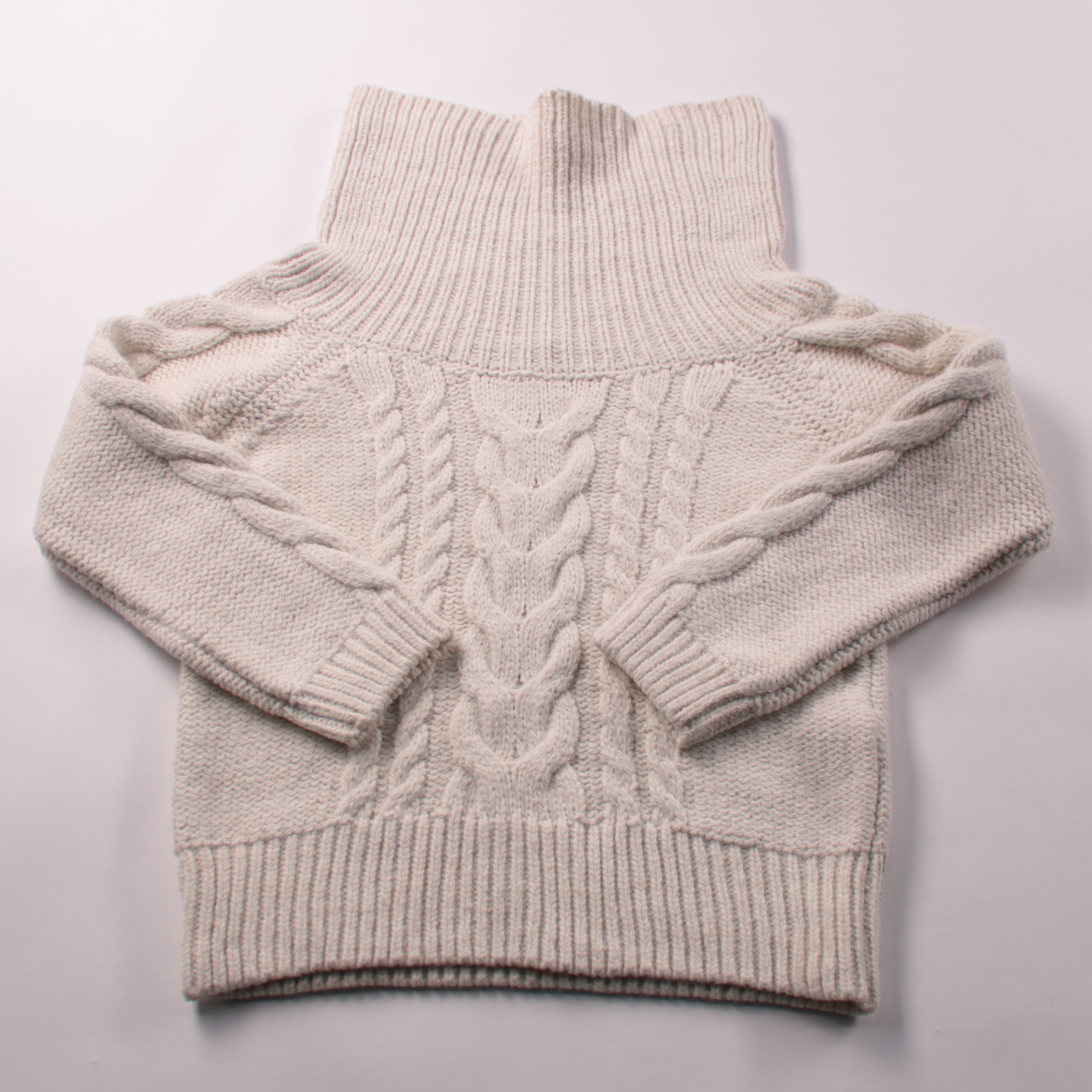 Вязаный свитер Next молочного цвета с высоким воротом и рельефным узором «косы». Подойдёт для прохладной погоды и многослойных образов с джинсами или юбкой. Плотная вязка хорошо держит форму и даёт комфортное тепло.