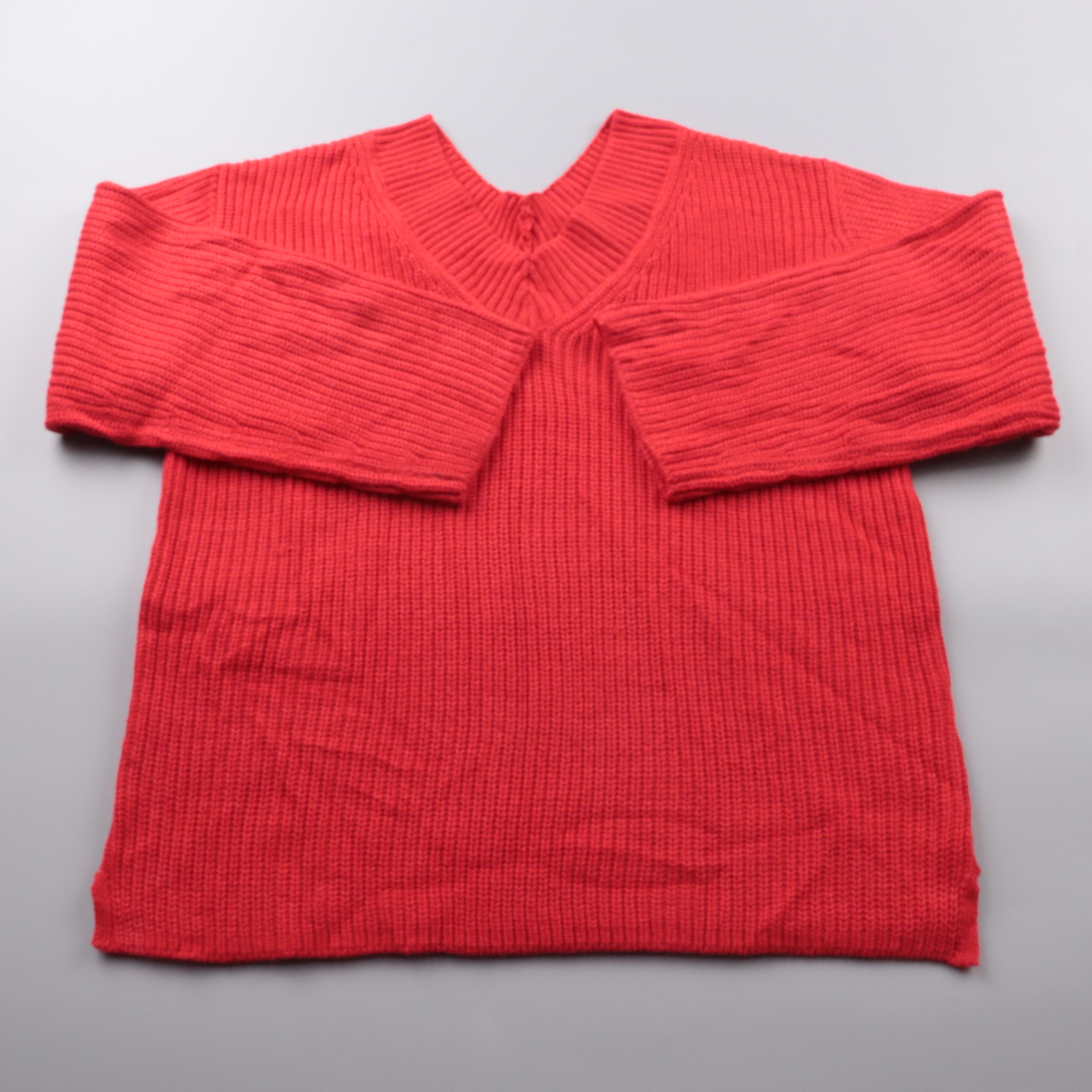 Вязаный джемпер Order+ ярко-красного цвета с V-образным вырезом и фактурной резинкой. Подойдёт для повседневных образов в прохладную погоду, хорошо сочетается с джинсами и юбками. Практичен тем, что трикотаж тянется и комфортно садится по фигуре.