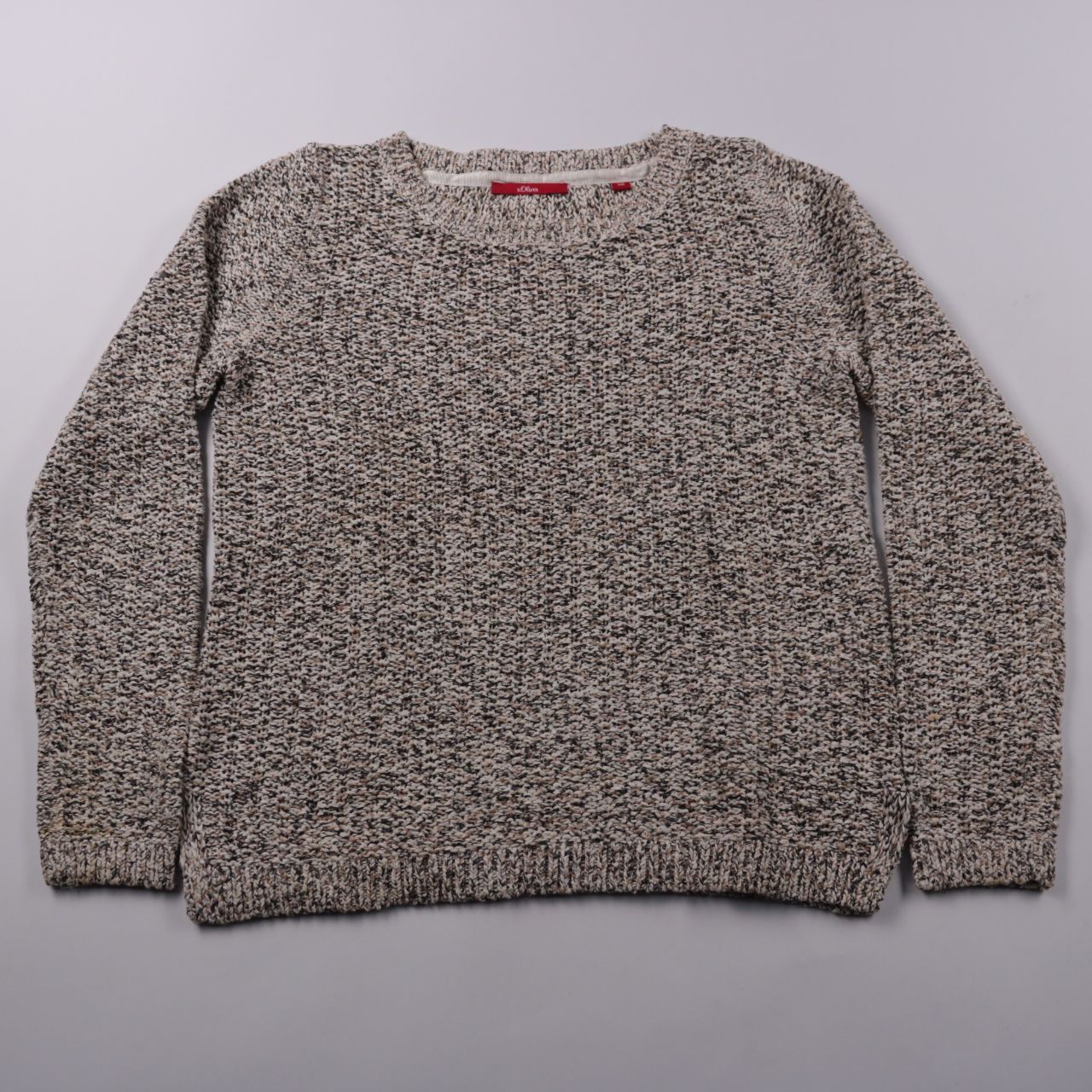 Вязаный свитер s.Oliver меланжевой расцветки с круглым вырезом и длинным рукавом. Подойдёт для повседневных образов в прохладную погоду, хорошо сочетается с джинсами и юбками. За счёт хлопка в составе приятен к телу и достаточно дышащий.