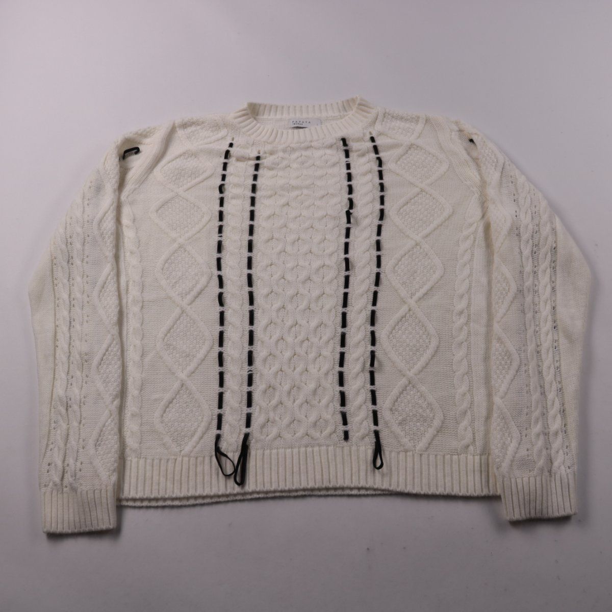 Женский свитер Papaya молочного цвета с фактурной вязкой «косы» и контрастной декоративной прострочкой спереди. Подойдёт для повседневных образов в прохладную погоду, хорошо смотрится с джинсами и юбками. Вязаное полотно тёплое и немного тянется, поэтому комфортно садится по фигуре.