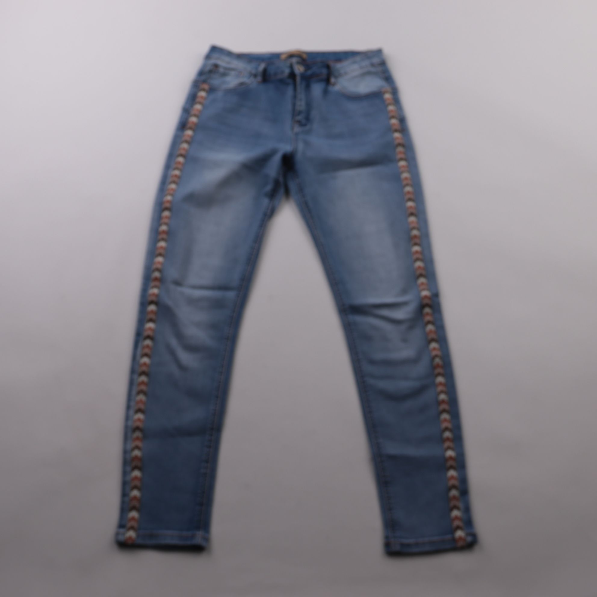 Женские джинсы Canada из светло-синего денима с контрастными декоративными лампасами по бокам. Подойдут для повседневных образов с кедами, лоферами или ботинками в демисезон и летом. За счёт добавления эластана ткань немного тянется и комфортнее садитс...