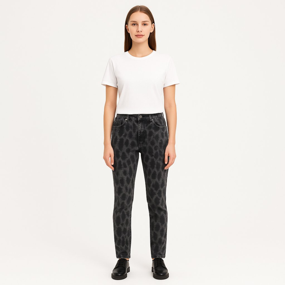Женские джеггинсы M&S в чёрном цвете с леопардовым принтом. Подойдут для повседневных образов с базовыми футболками, свитшотами и грубыми ботинками. Эластичная ткань хорошо садится по фигуре и удобна в носке.