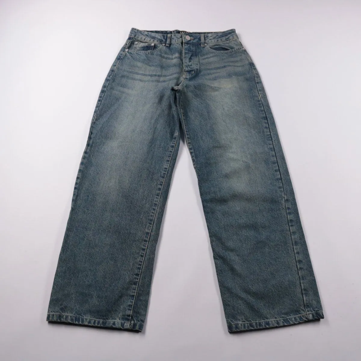 Джинсы BoohooMAN из плотного денима в классическом синем цвете с лёгкими потертостями. Подойдут для повседневных образов в стиле casual с кроссовками или ботинками. Практичные: прочная ткань и удобная посадка на каждый день.