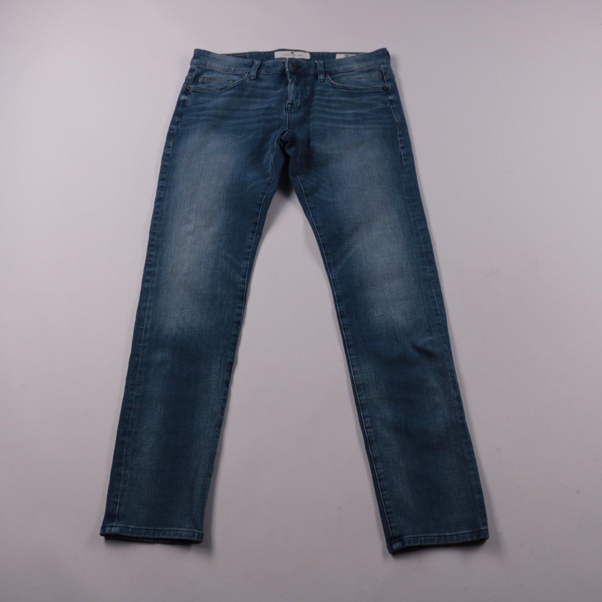 Мужские джинсы Tom Tailor Troy Slim из синего денима с лёгким эффектом выварки. Подойдут для повседневной носки в городе и неформальных образов. За счёт добавления эластана ткань немного тянется и комфортнее садится по фигуре.