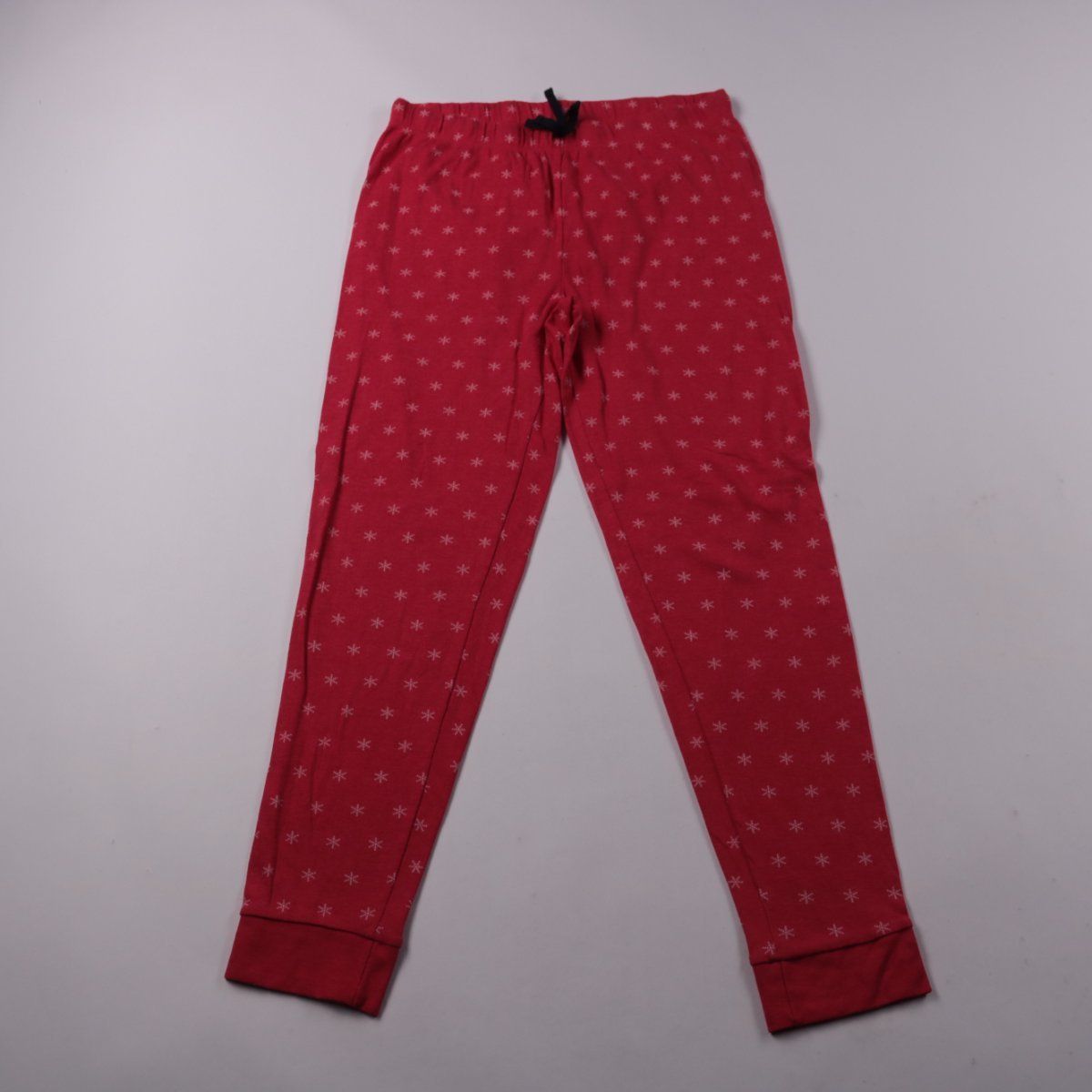 Пижамные брюки Primark Cares красного цвета с мелким принтом в звёздочки и мягкими манжетами по низу. Подойдут для сна и дома, пояс на резинке с завязкой помогает удобно регулировать посадку. Практичный плюс — хлопковая ткань приятна к телу и проста в уходе.