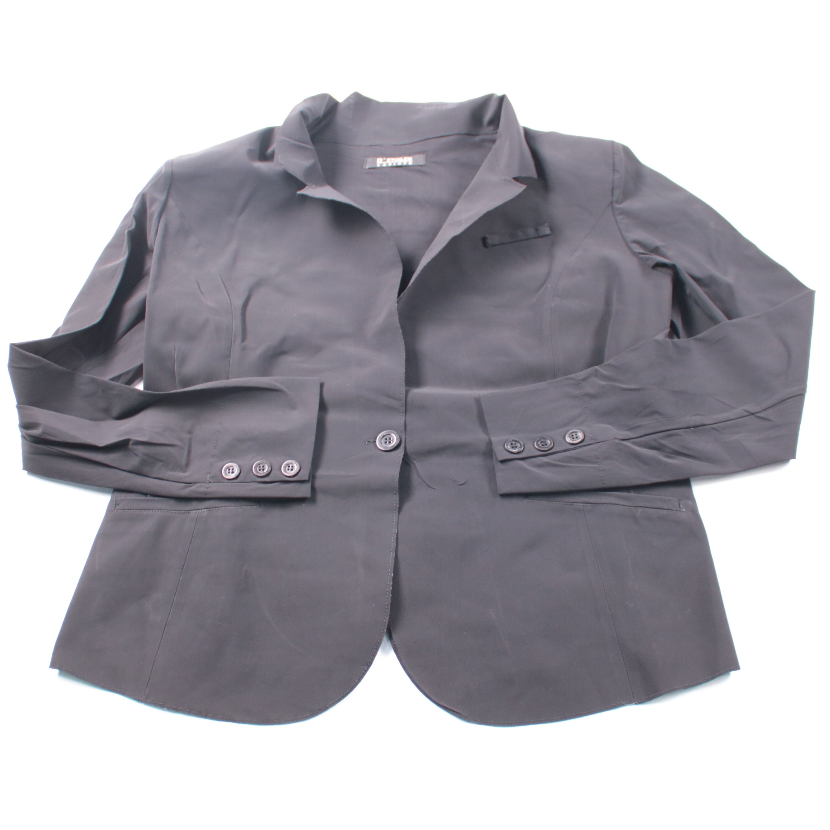 Женский пиджак D'Etoiles Casiopé чёрного цвета, лаконичный однобортный крой с воротником и карманами. Подойдёт для офиса, деловых встреч и повседневных образов с брюками или юбкой. Практичный материал тянется за счёт эластана и комфортно садится по фиг...