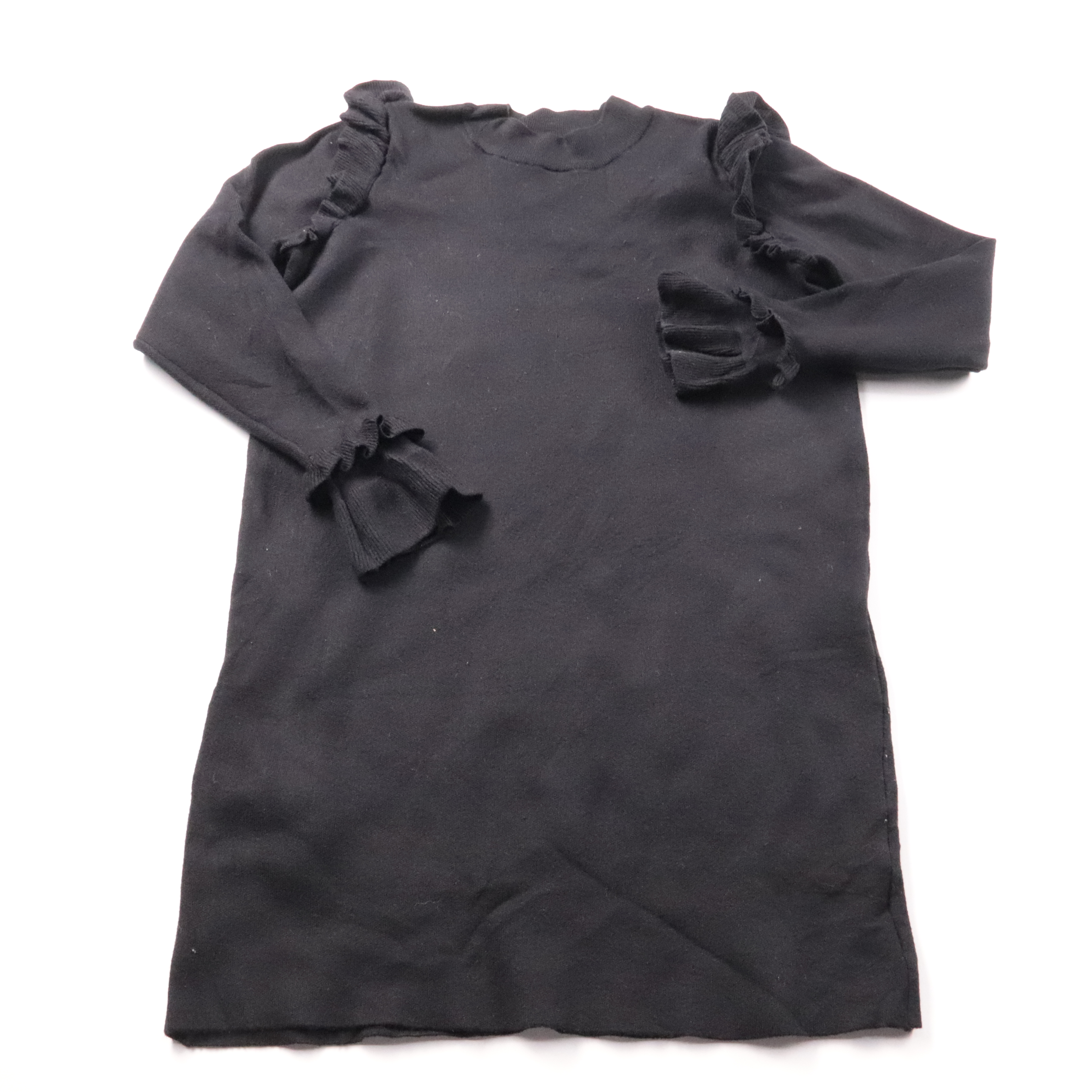 Повседневное трикотажное платье Costes Studio чёрного цвета с длинными рукавами и декоративными рюшами на плечах и манжетах. Подойдёт для офиса и на каждый день, легко сочетается с ботильонами или кроссовками. Практичный плюс — плотный трикотаж комфорт...