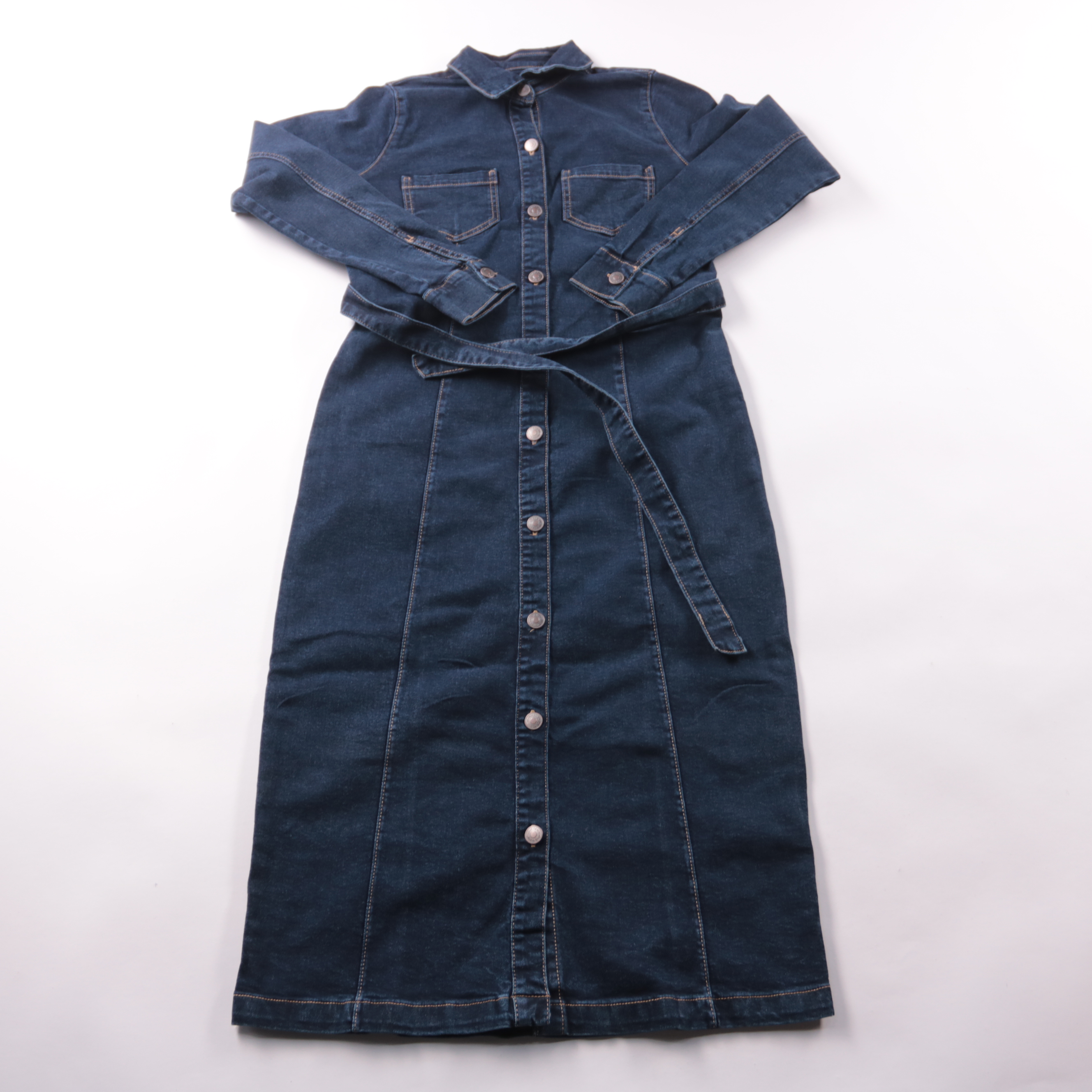 Джинсовое платье-рубашка George из плотного индиго-денима на кнопках, с длинным рукавом, накладными карманами и поясом. Подойдёт для повседневных образов в демисезон и прохладное лето, легко сочетается с кедами или ботинками. Практичный плюс — прочная ...