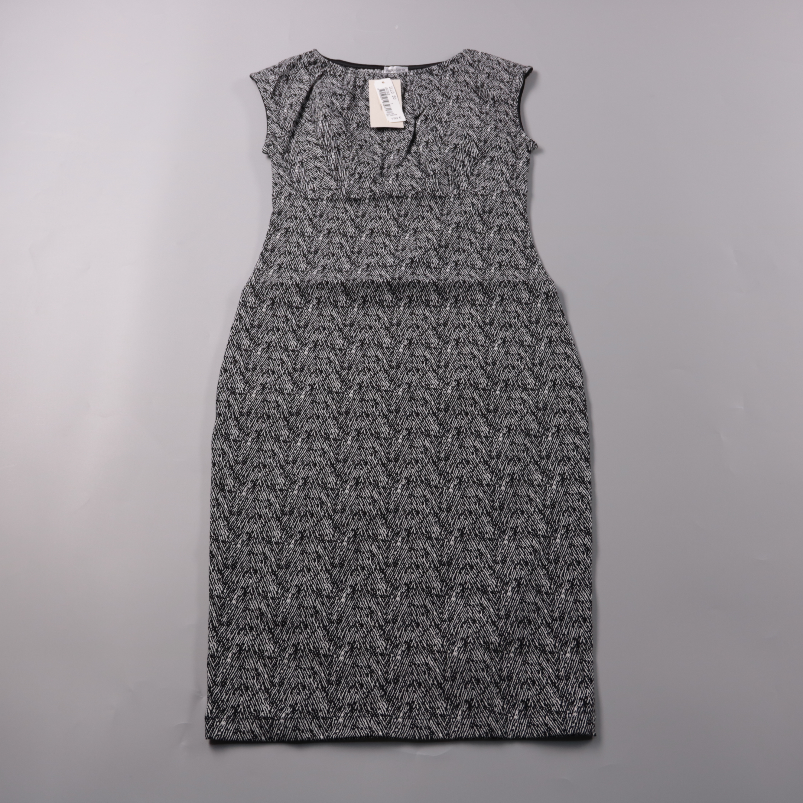 Повседневное платье Pain de Sucre из плотного трикотажа с графичным черно-белым узором и V‑образным вырезом. Подойдёт для офиса и на каждый день, легко сочетается с жакетом или кардиганом. Материал с эластаном хорошо тянется и комфортно садится по фигуре.