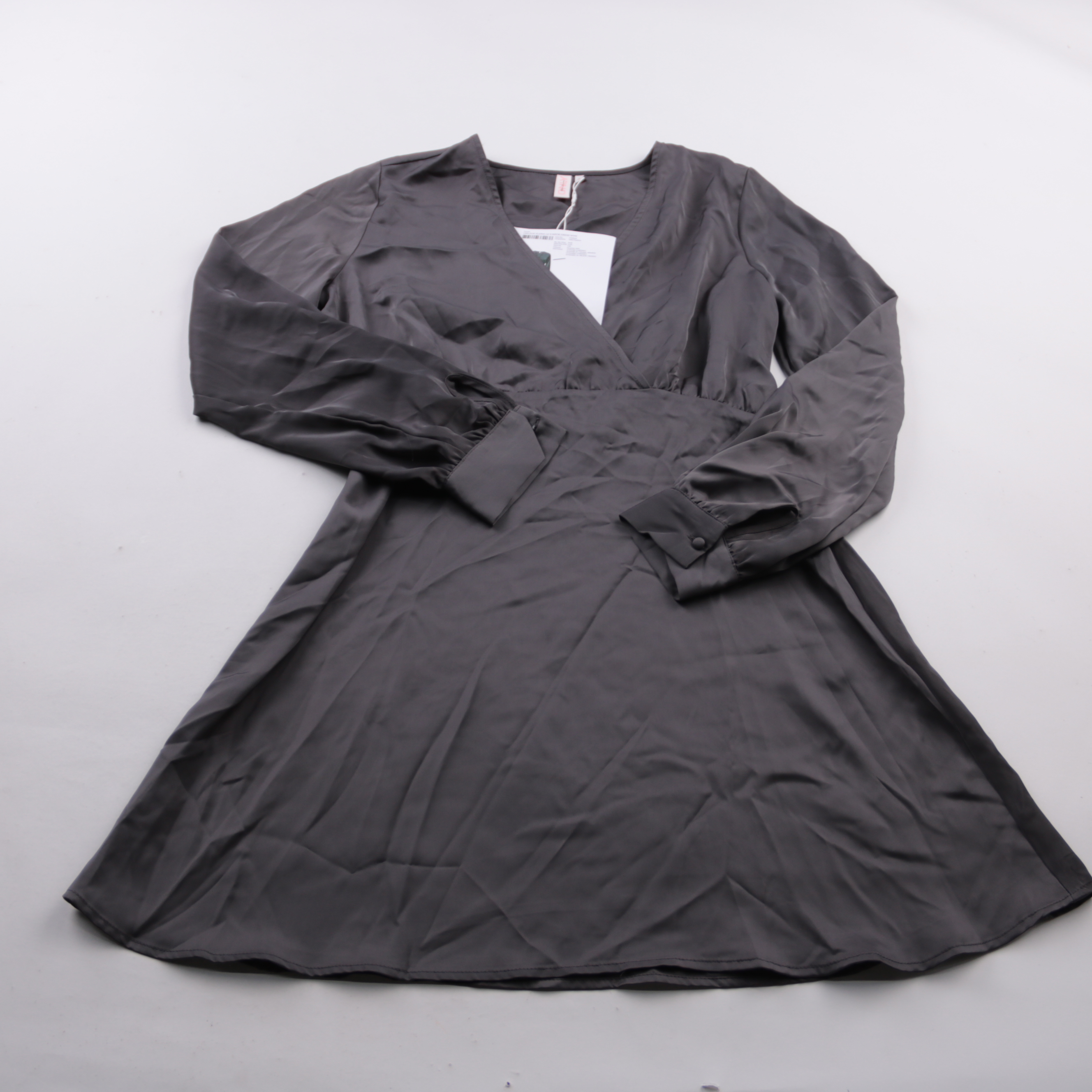 Платье Orsay из гладкого полиэстера, чёрного цвета, с запахом и V-образным вырезом. Подойдёт для офиса и вечерних выходов, красиво подчёркивает талию за счёт сборки. Материал почти не мнётся и быстро сохнет.