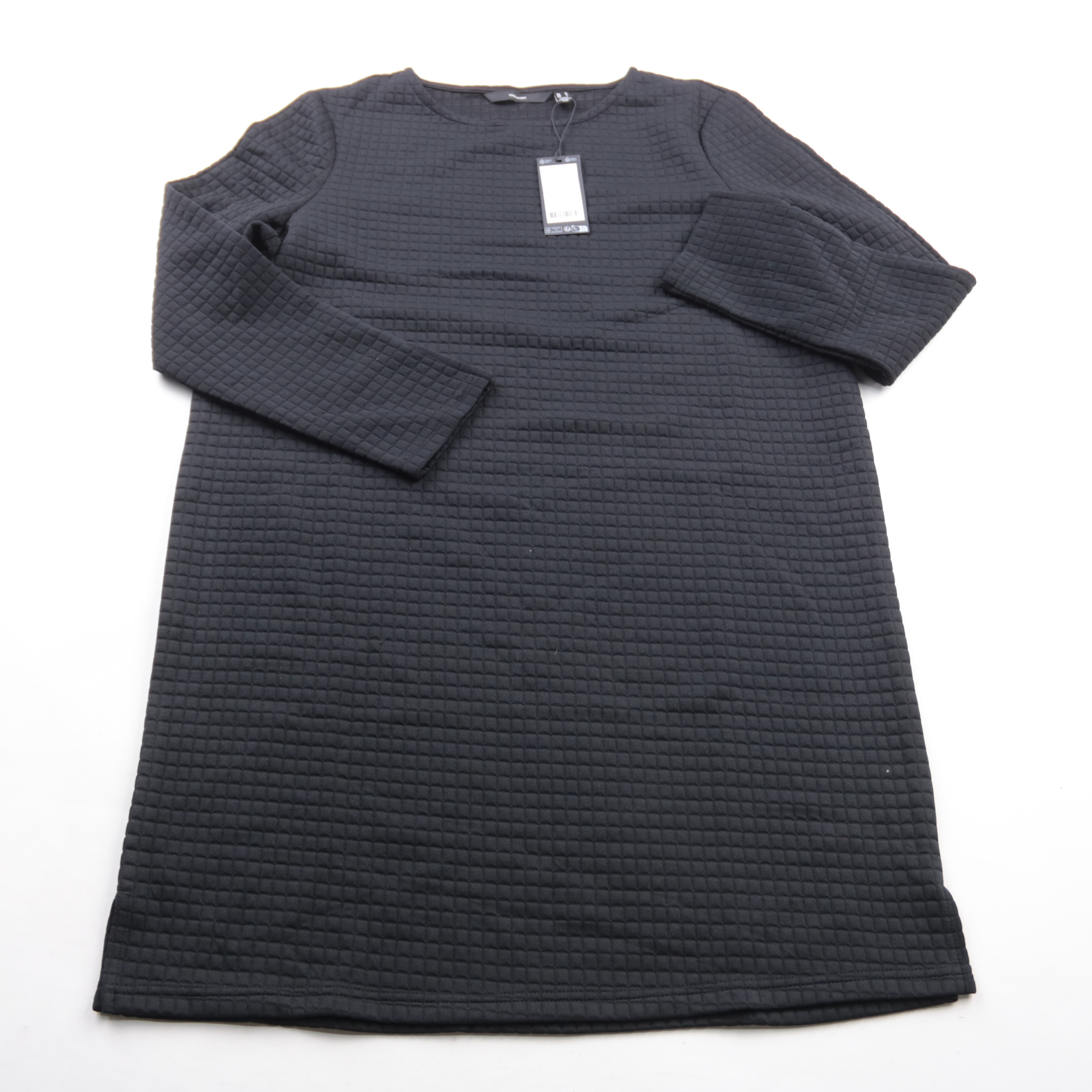 Повседневное платье Vero Moda чёрного цвета из фактурного материала с длинным рукавом и прямым силуэтом. Подойдёт для офиса и на каждый день, легко сочетается с кедами или ботинками. Плотная ткань держит форму и почти не мнётся.