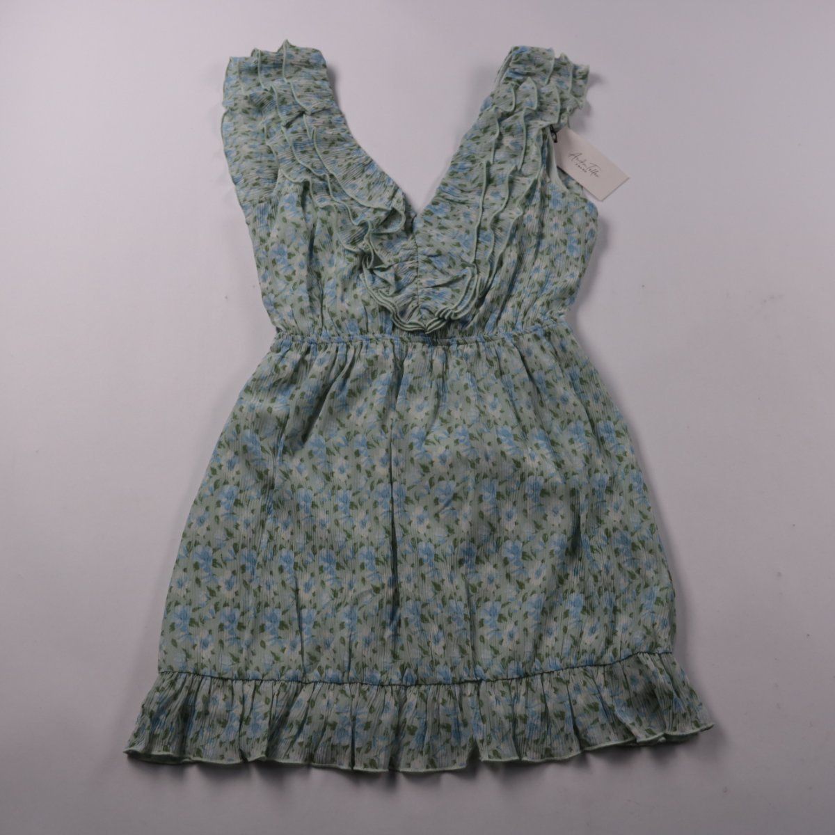 Платье NA-KD (коллаборация Anika Teller) с V-образным вырезом, рюшами и цветочным принтом. Подойдёт для летних прогулок и повседневных образов, есть пояс-завязка на талии для регулировки посадки. Лёгкая ткань из полиэстера быстро сохнет и почти не мнётся.