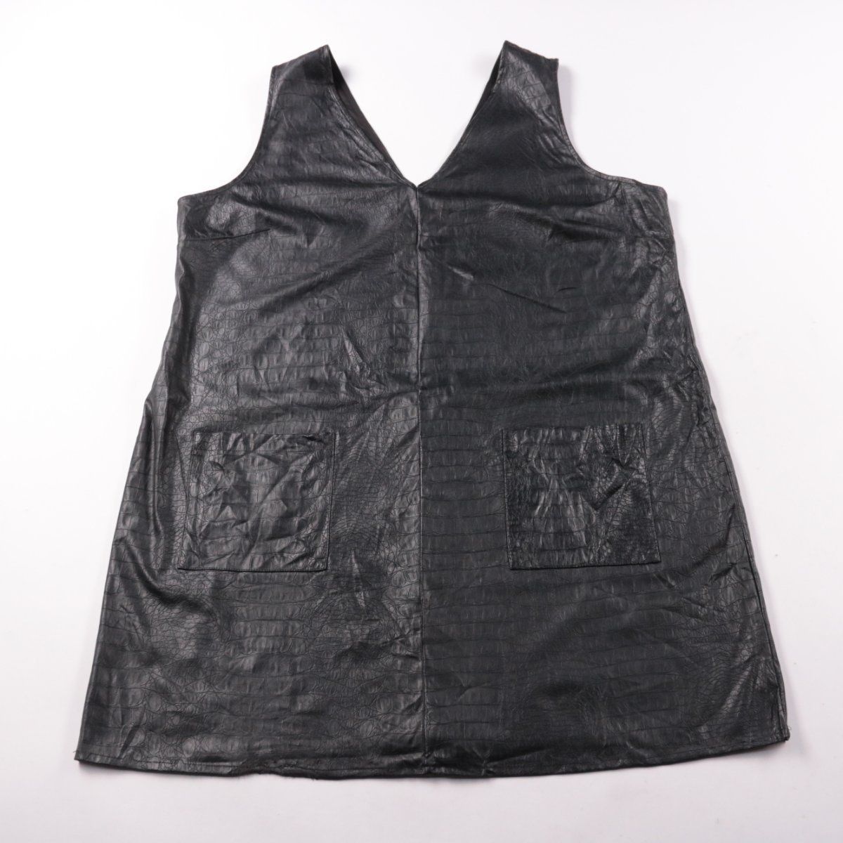 Повседневное платье George без рукавов из экокожи с тиснением под крокодила и V-образным вырезом. Подойдёт для городских образов и многослойных комплектов с водолазкой или рубашкой. Практичный плюс — материал легко протирается и не требует сложного ухода.