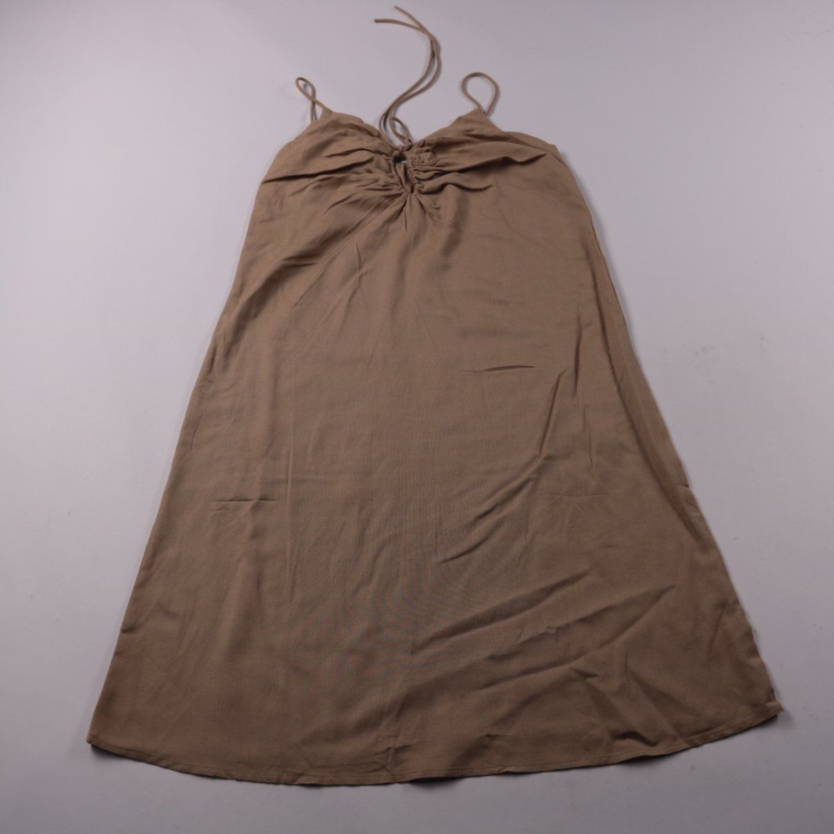 Повседневное платье-комбинация Only бежевого оттенка, на тонких бретелях с присборенной линией груди. Лёгкий свободный крой подойдёт для лета, отпуска и городских прогулок. Смесовая ткань с льном хорошо дышит и комфортна в жару.