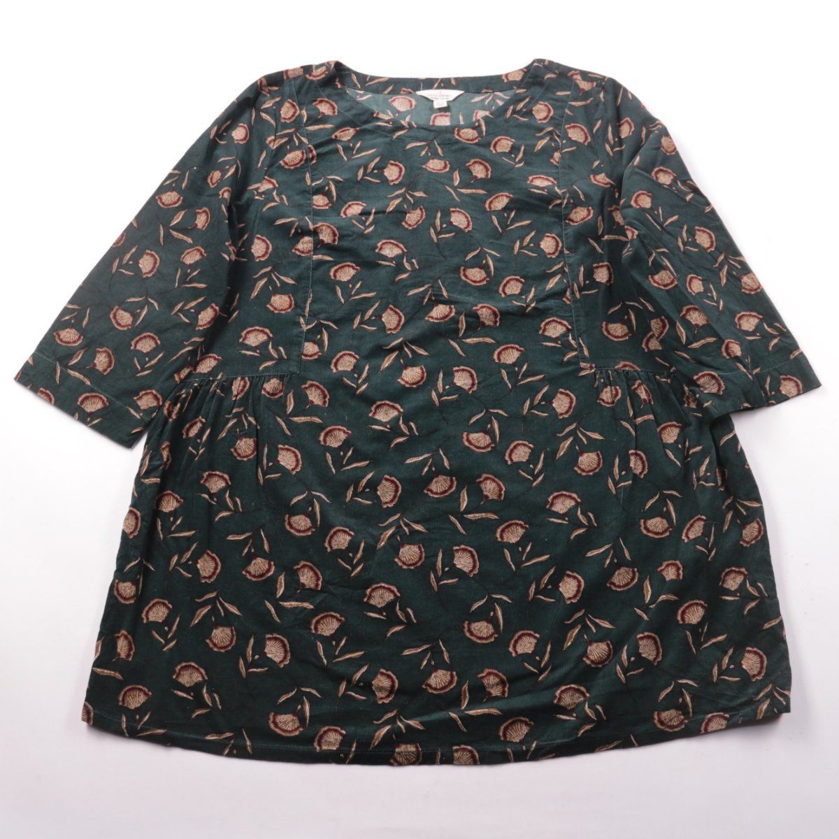 Повседневное платье Seasalt Cornwall из органического хлопка с принтом на тёмно-зелёном фоне и рукавами 3/4. Подойдёт для прогулок и повседневной носки в тёплую весну/осень или прохладное лето. Натуральная ткань хорошо дышит и комфортна в течение дня.