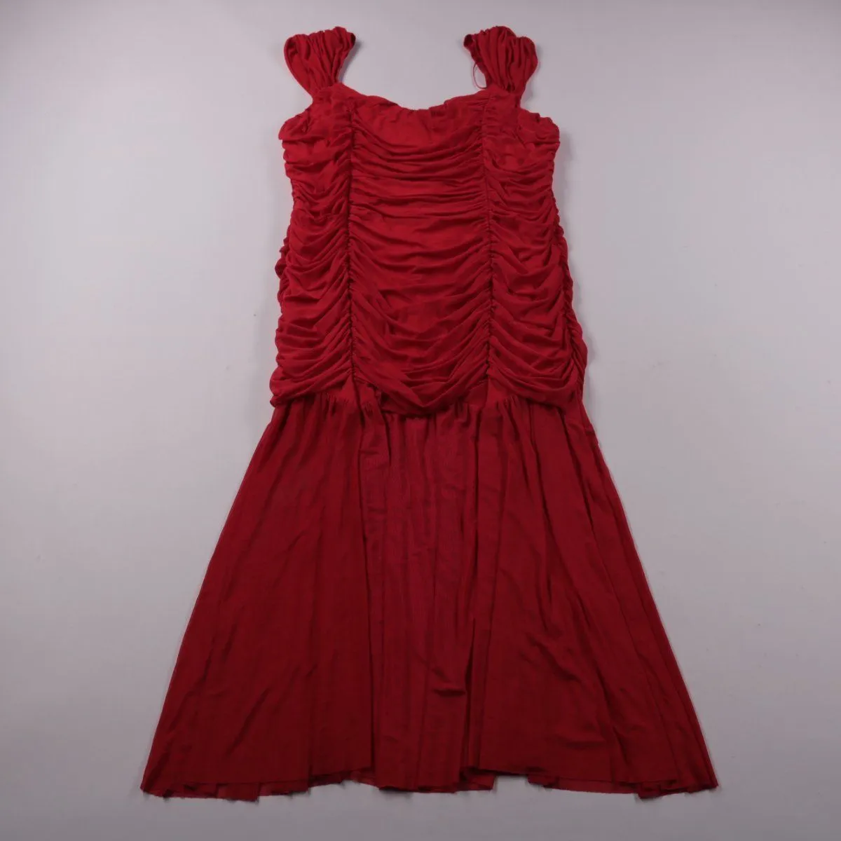 Вечернее платье Iska красного цвета с драпировкой по лифу и расклешённой юбкой. Подойдёт для праздника, вечернего выхода или фотосессии, а эластан в составе делает посадку более комфортной.
