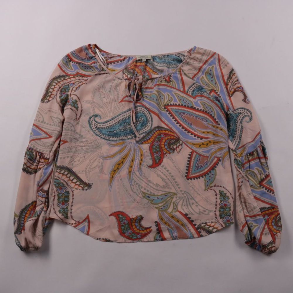 Женская блузка Papaya с ярким принтом пейсли и завязками у горловины. Подойдёт для повседневных образов и офиса в сочетании с джинсами или юбкой. Лёгкая ткань из полиэстера почти не мнётся и быстро сохнет.