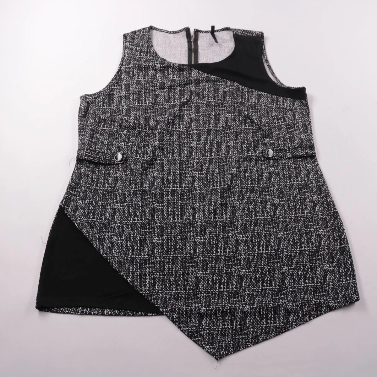 Повседневное платье Crossroads без рукавов из фактурной ткани с асимметричной накладкой спереди и молнией на спинке. Подойдёт для офиса и городских образов в прохладную погоду. Ткань с добавлением эластана слегка тянется и держит форму.