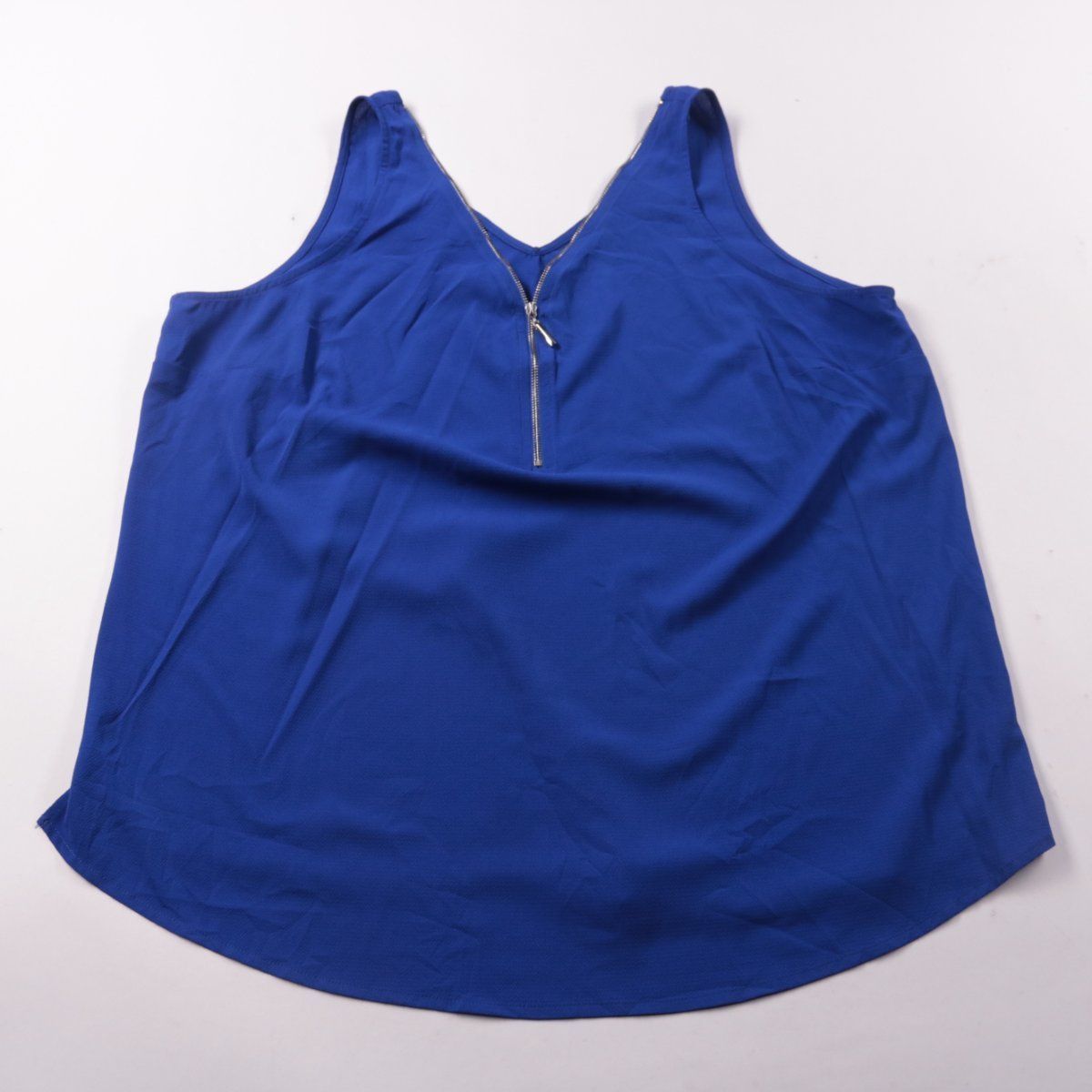 Женская блузка Crossroads насыщенного синего цвета, без рукавов, с V-вырезом и застёжкой-молнией спереди. Подойдёт для тёплой погоды и для офиса с жакетом или кардиганом. Лёгкий полиэстер быстро сохнет и почти не мнётся в носке.