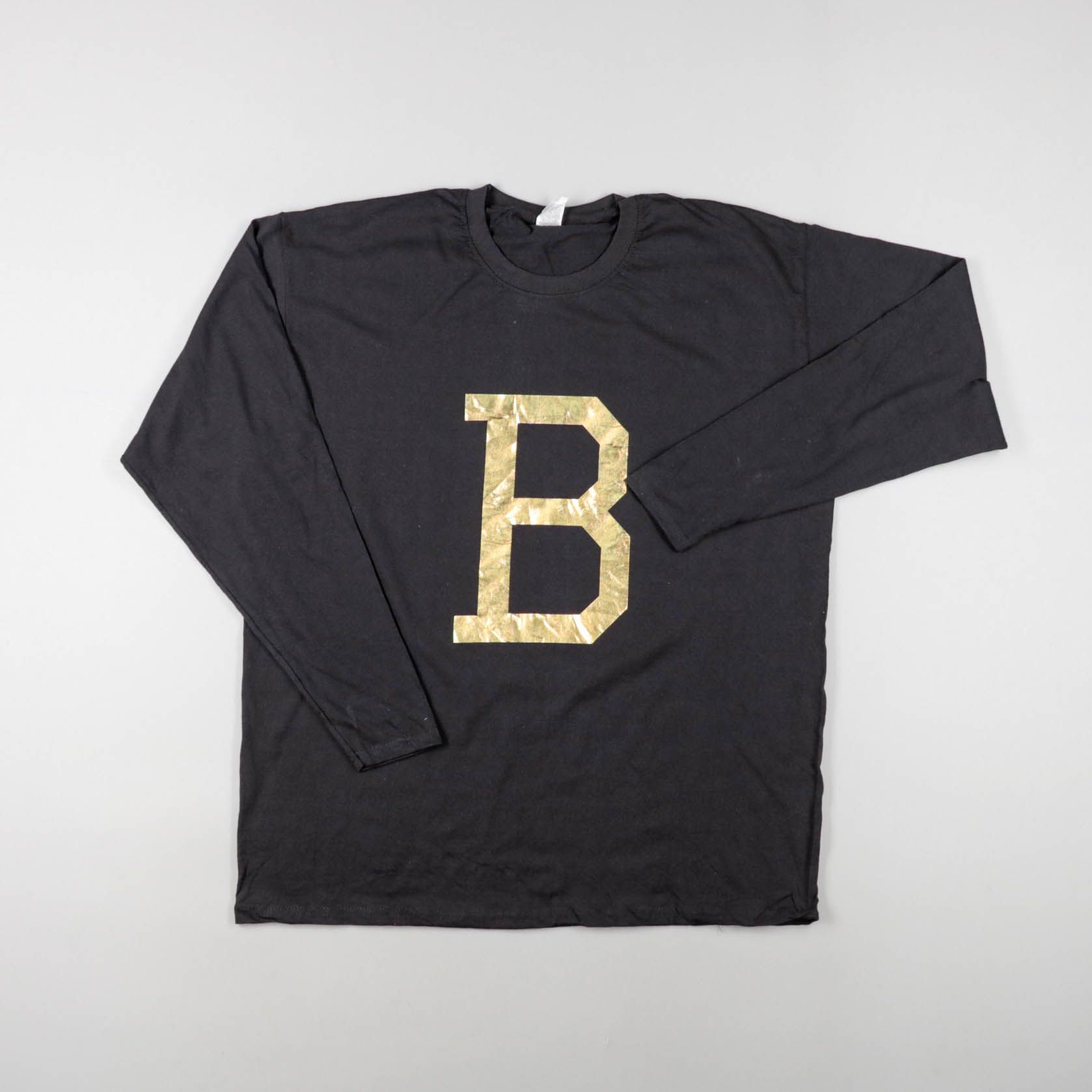 Свитшот чёрного цвета с крупной золотистой буквой B на груди. Подойдёт для повседневных образов и прогулок, легко сочетается с джинсами и спортивными брюками. Удобный длинный рукав и мягкий трикотаж делают его практичным для носки в помещении и на улице.