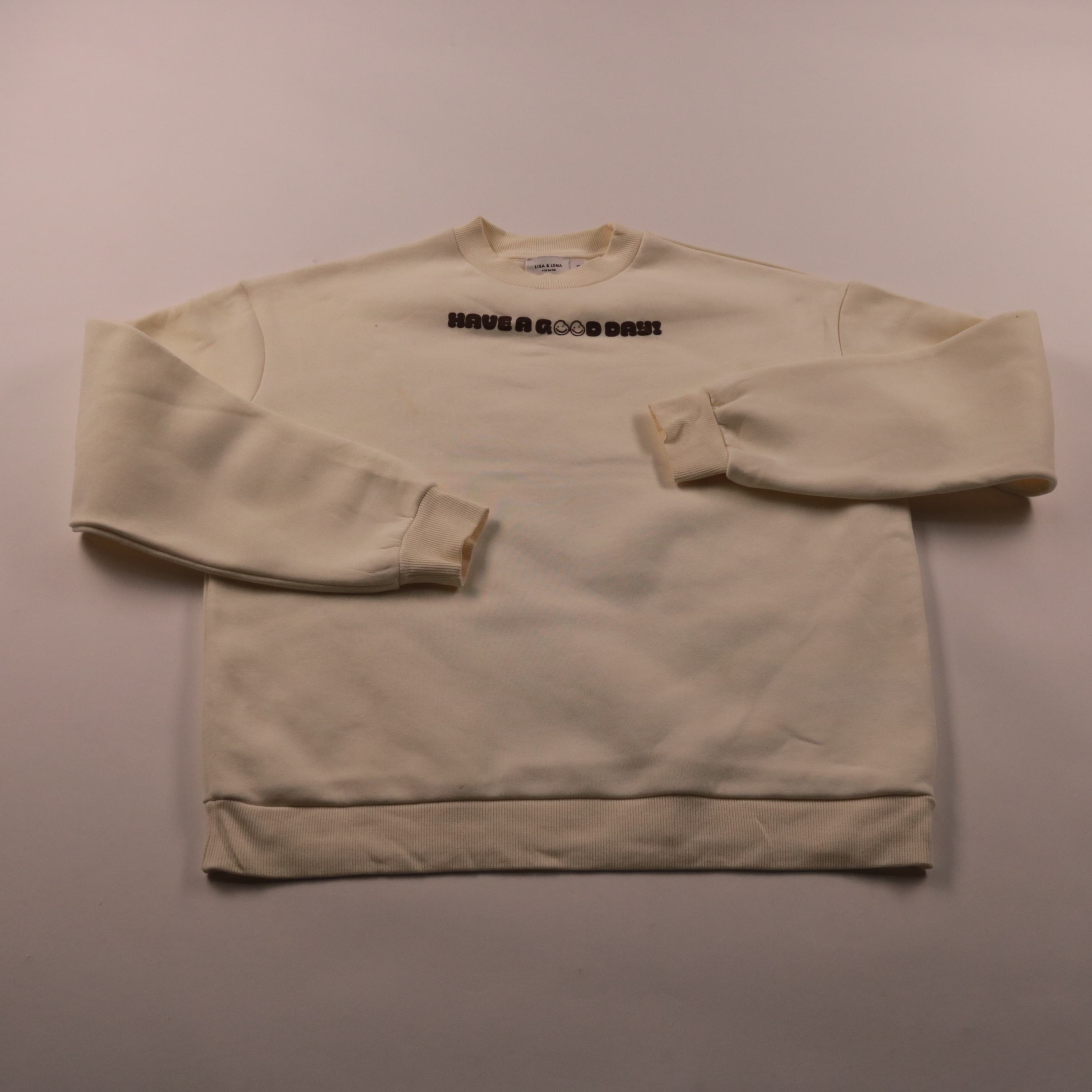Свитшот NA-KD (коллаборация Lisa & Lena) молочного цвета, свободного кроя, с круглым вырезом и надписью спереди. Подойдёт для повседневных образов и поездок, легко сочетается с джинсами и спортивными брюками. Плотный мягкий материал и эластичные манжет...