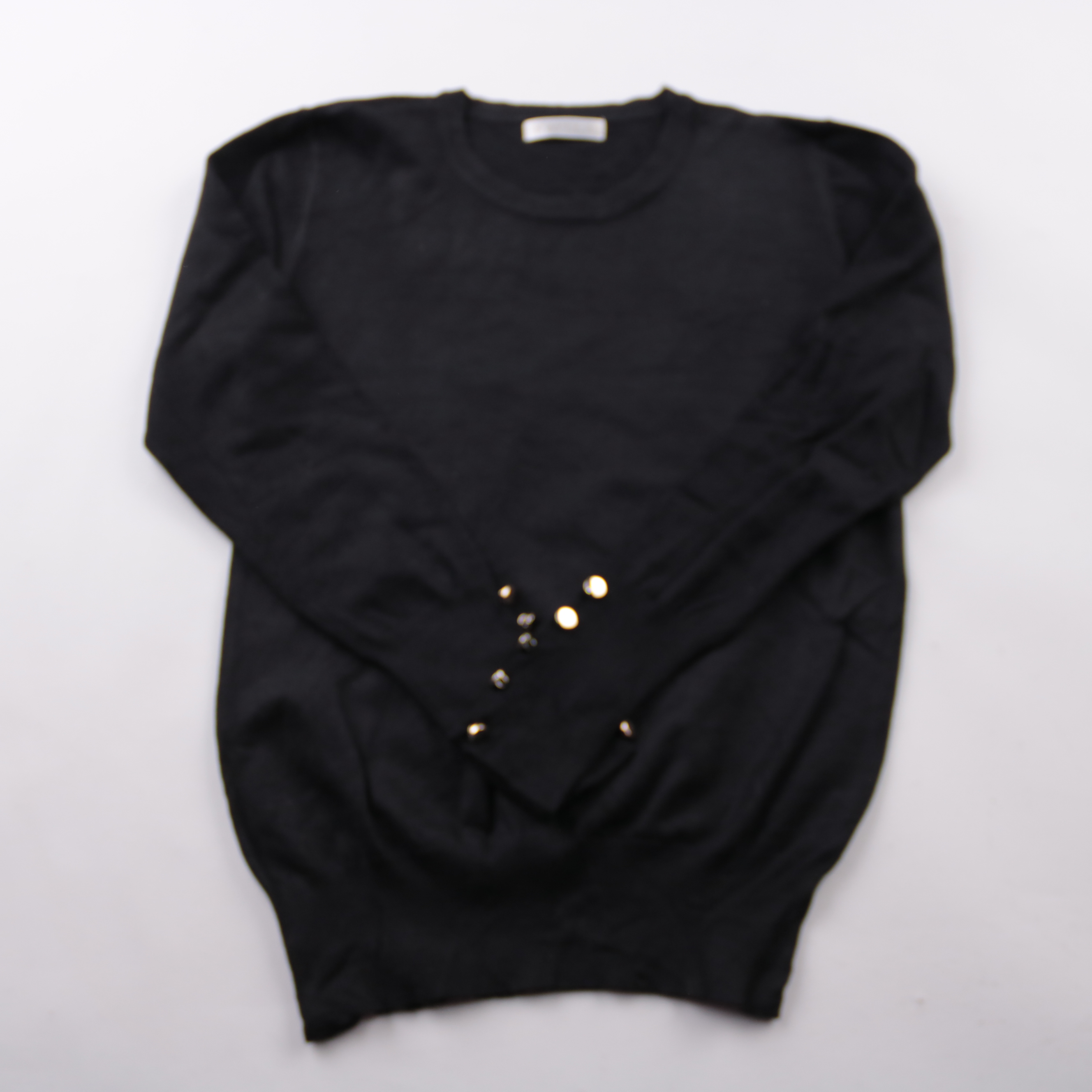 Чёрный свитшот Kaylla с лаконичным круглым вырезом и акцентными пуговицами на манжетах. Подойдёт для повседневных образов в офис и на прогулки, легко сочетается с джинсами и юбками. Мягкая вискоза с добавлением эластана приятно тянется и комфортно сади...
