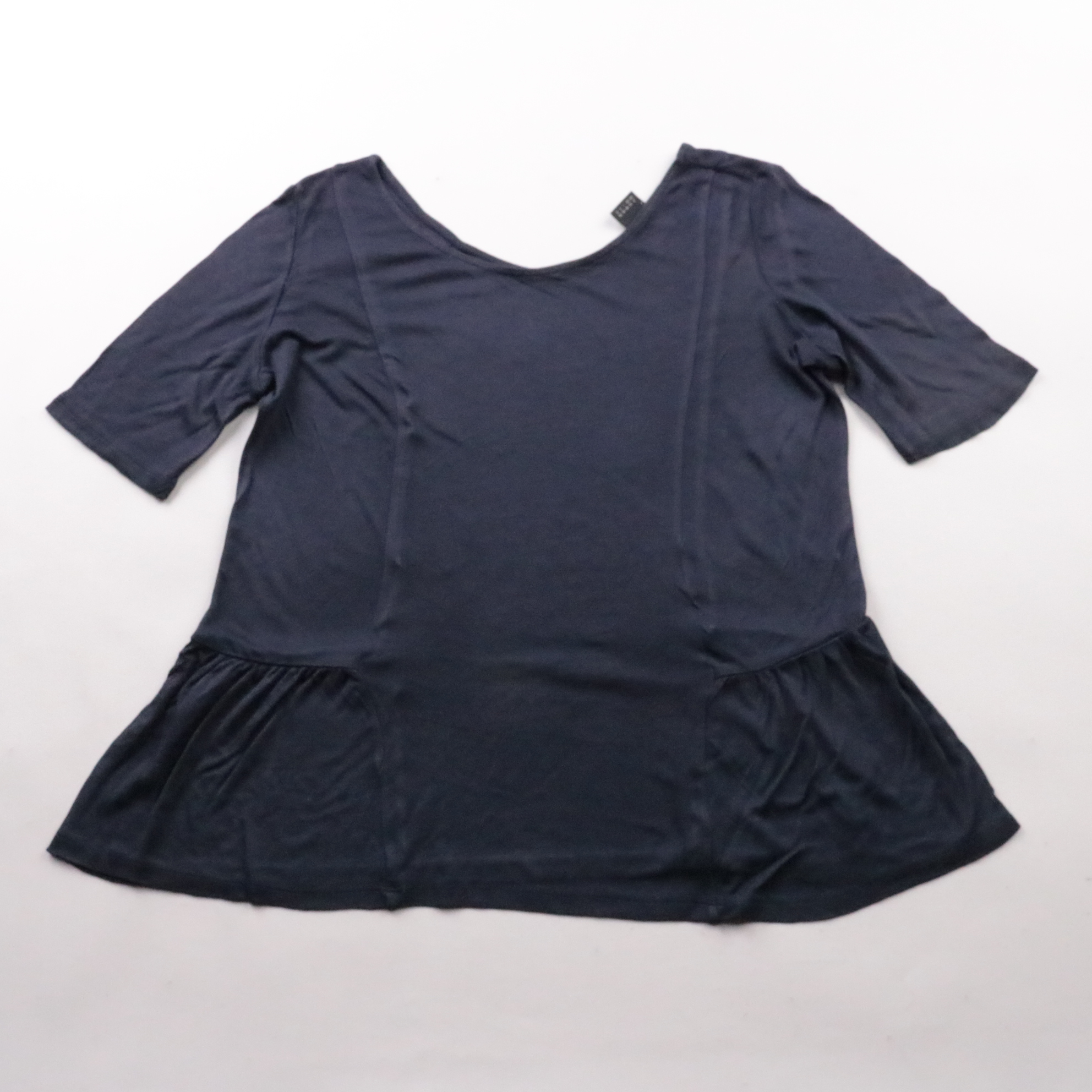 Женская футболка S.Oliver Black Label тёмно-синего цвета с V-образным вырезом и коротким рукавом. Свободный крой с лёгкой сборкой по низу хорошо подходит для повседневных образов и офиса с жакетом. Практичный вариант: легко сочетается с джинсами и брюк...