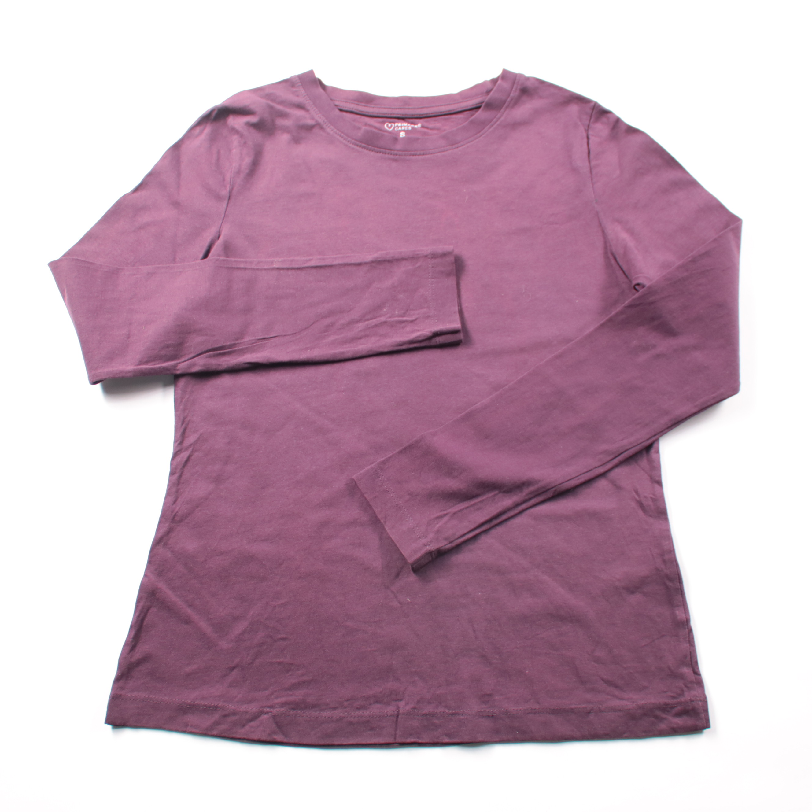 Женский лонгслив Primark Cares бордового цвета с круглым вырезом и длинным рукавом. Подойдёт для повседневных образов и как базовый слой в прохладную погоду. Натуральный хлопок приятен к телу и хорошо дышит.