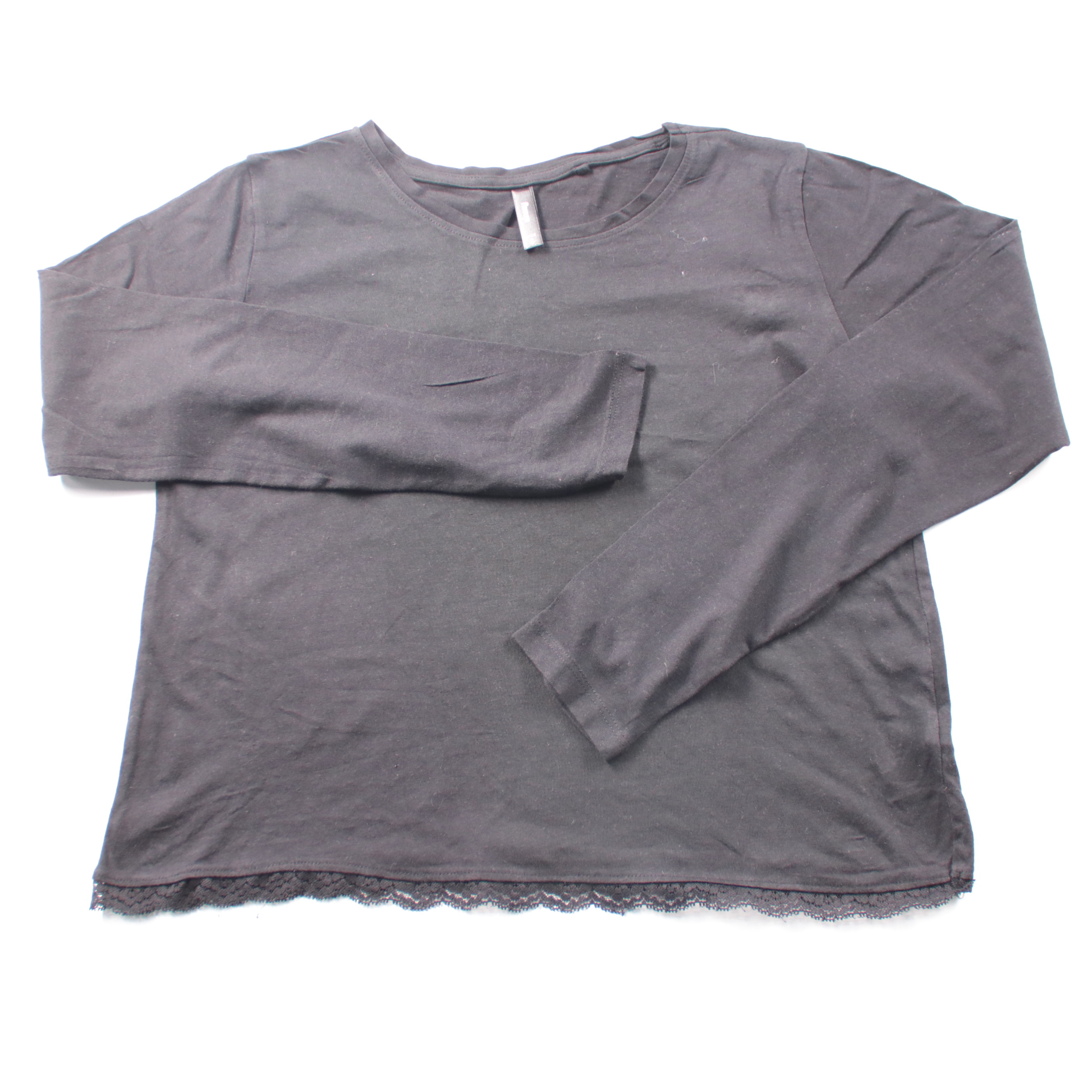 Женский лонгслив Sinsay чёрного цвета с кружевной отделкой по нижнему краю. Подойдёт для повседневных образов и как базовый слой в прохладную погоду. Тонкий трикотаж мягко тянется и удобно сидит под жакетом или кардиганом.