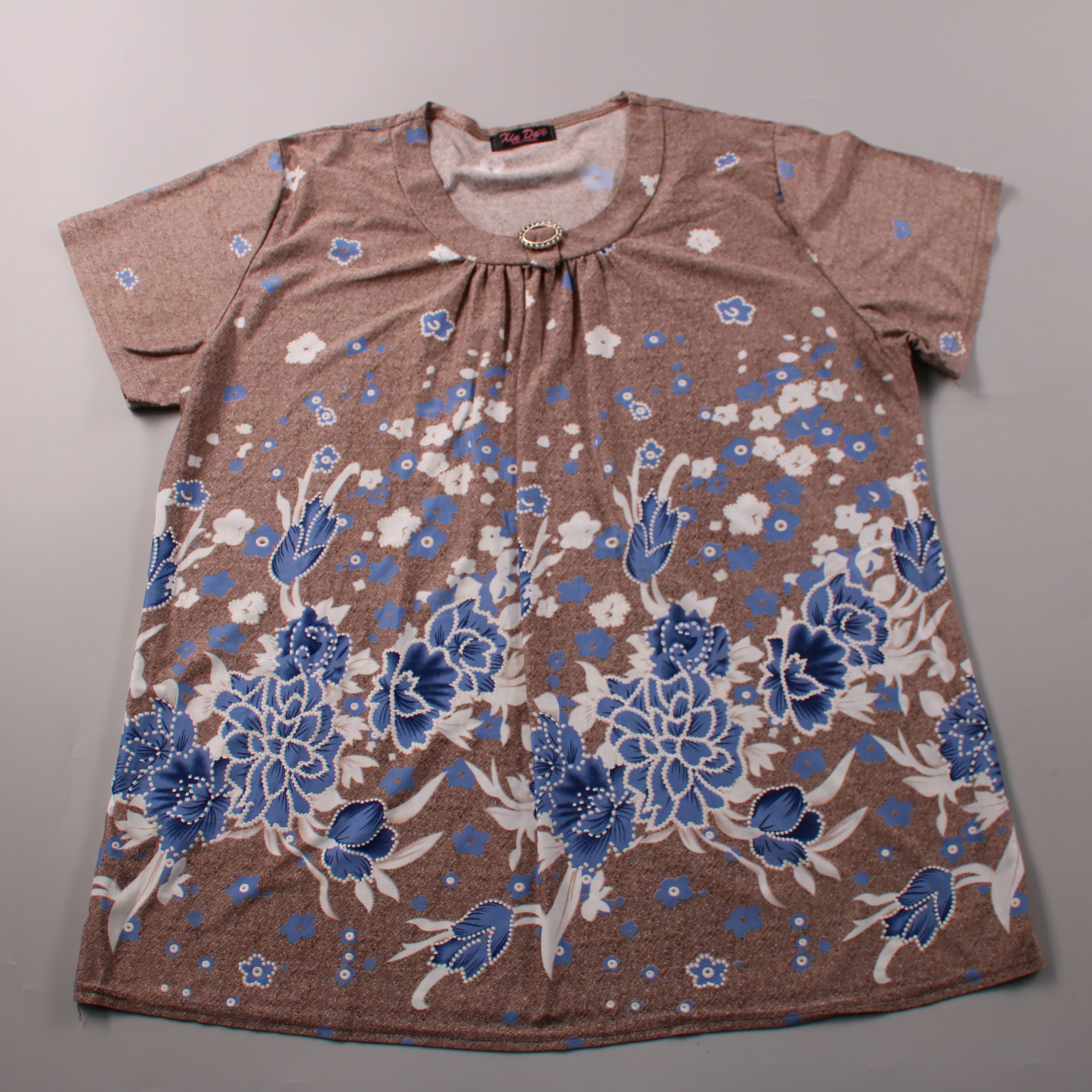 Женская футболка Kira Da коричневого цвета с синим цветочным принтом и декоративной вставкой у горловины. Подойдёт для повседневных образов летом и в тёплую погоду, хорошо сочетается с джинсами или однотонной юбкой. Материал мягкий и практичный в уходе...